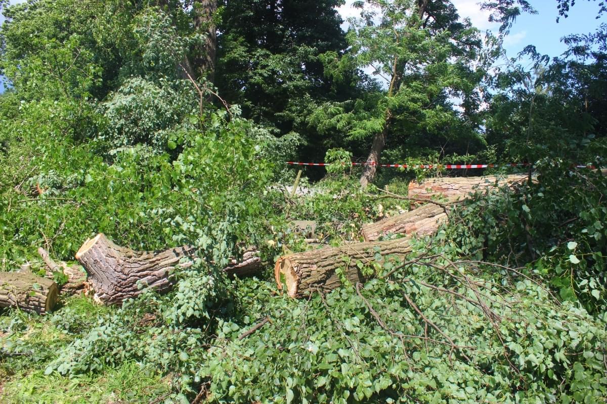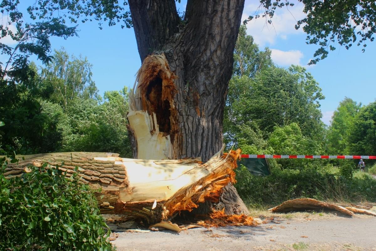 Strom se rozštípl na tři části, kdy jedna z nich spadla poničila plot a místní zahradu. Zbylé dvě části stromu stále hrozí pádem. Místo je uzavřeno policejními a hasičskými páskami a je zde zákaz vstupu.