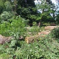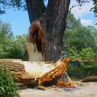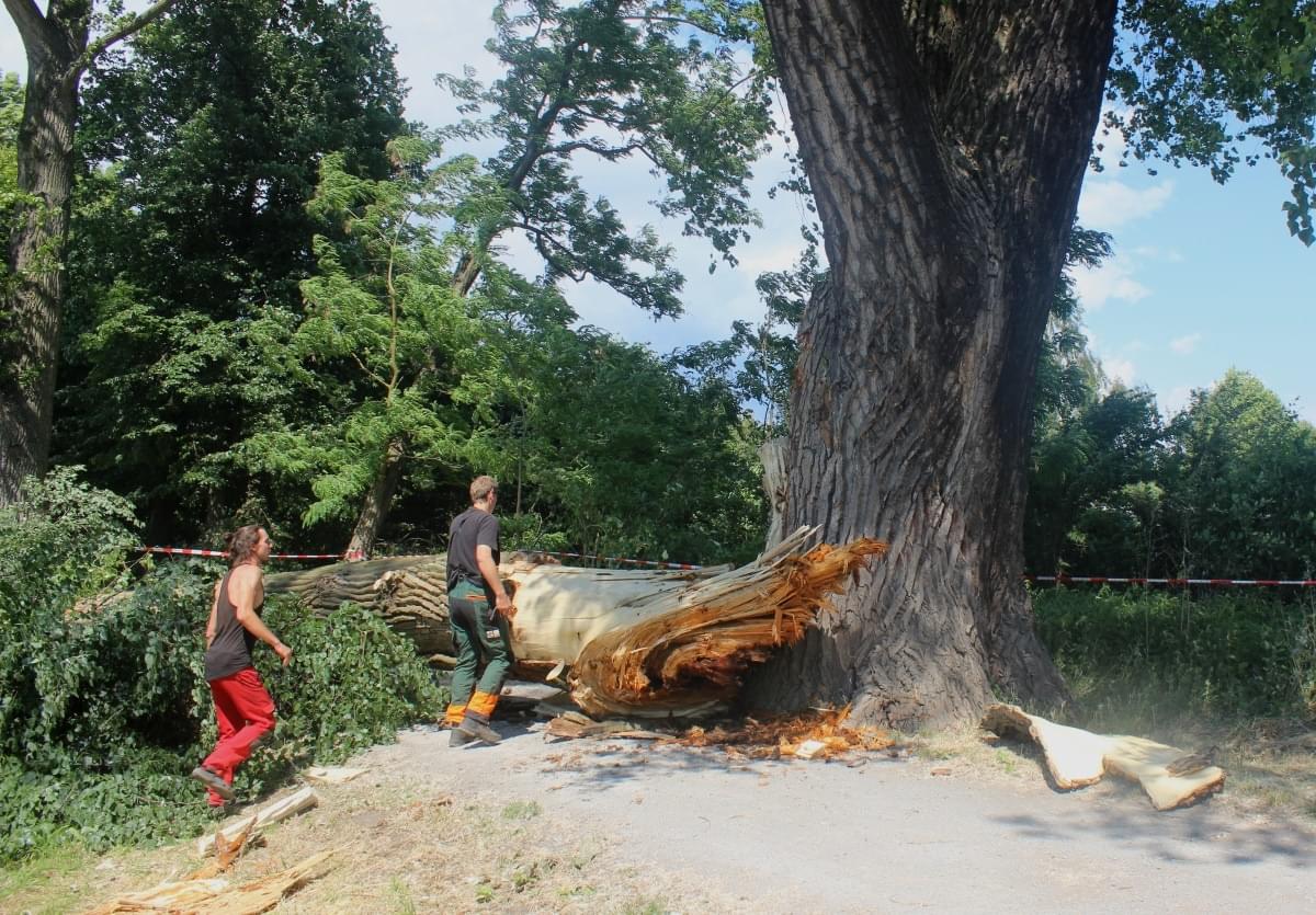 Na místě již byla speciální skupina arboretistů – lezců, zaměřených na sekání a speciální kácení, kteří ale zjistili, že kdyby vylezli na strom, hrozí, že se zřítí i s nimi. Během následujících několika dní bude probíhat odstraňování stromu za pomoci speciální těžké techniky.
