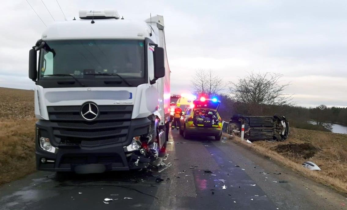 "Řidič narozený v roce 1987 a jedoucí s osobním vozidlem značky Fiat se při průjezdu pravotočivou zatáčkou dostal do smyku a střetl se s protijedoucím kamionem značky Mercedes.Po nárazu se osobní vozidlo otočilo přes střechu a zůstalo ležet v pozici na boku. U řidiče nákladního vozu byla dechová zkouška s negativním výsledkem. Muž v osobním vozidle kvůli utrpěnému zranění nebyl dechové zkoušky schopen a tak si policisté vyžádali odběr krve", popsala děj mluvčí policie s tím, že kolegové příčinu a veškeré další okolnosti dopravní nehody dále šetří.