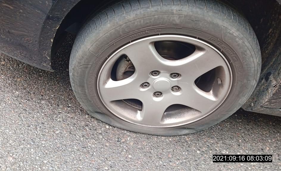 Mladý cyklista ve vzteku probodl jednašedesátileté řidičce kolo u auta