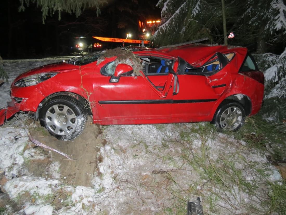 "Řidička narozená v roce 1997 jela ve směru od Úněšova na Bezvěrov a přibližně sto padesát metrů za křižovatkou na Krsy nepřizpůsobila rychlost jízdy, následkem čehož přejela do protisměru, kde se lehce střetla se zadní částí návěsu protijedoucí soupravy tahače Volvo s návěsem Schmitz, řízené mužem narozeným v roce 1993," popsala tisková mluvčí policie s tím, že Peugeot po střetu pokračoval do levého silničního příkopu, kde se převrátil na střechu.