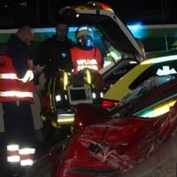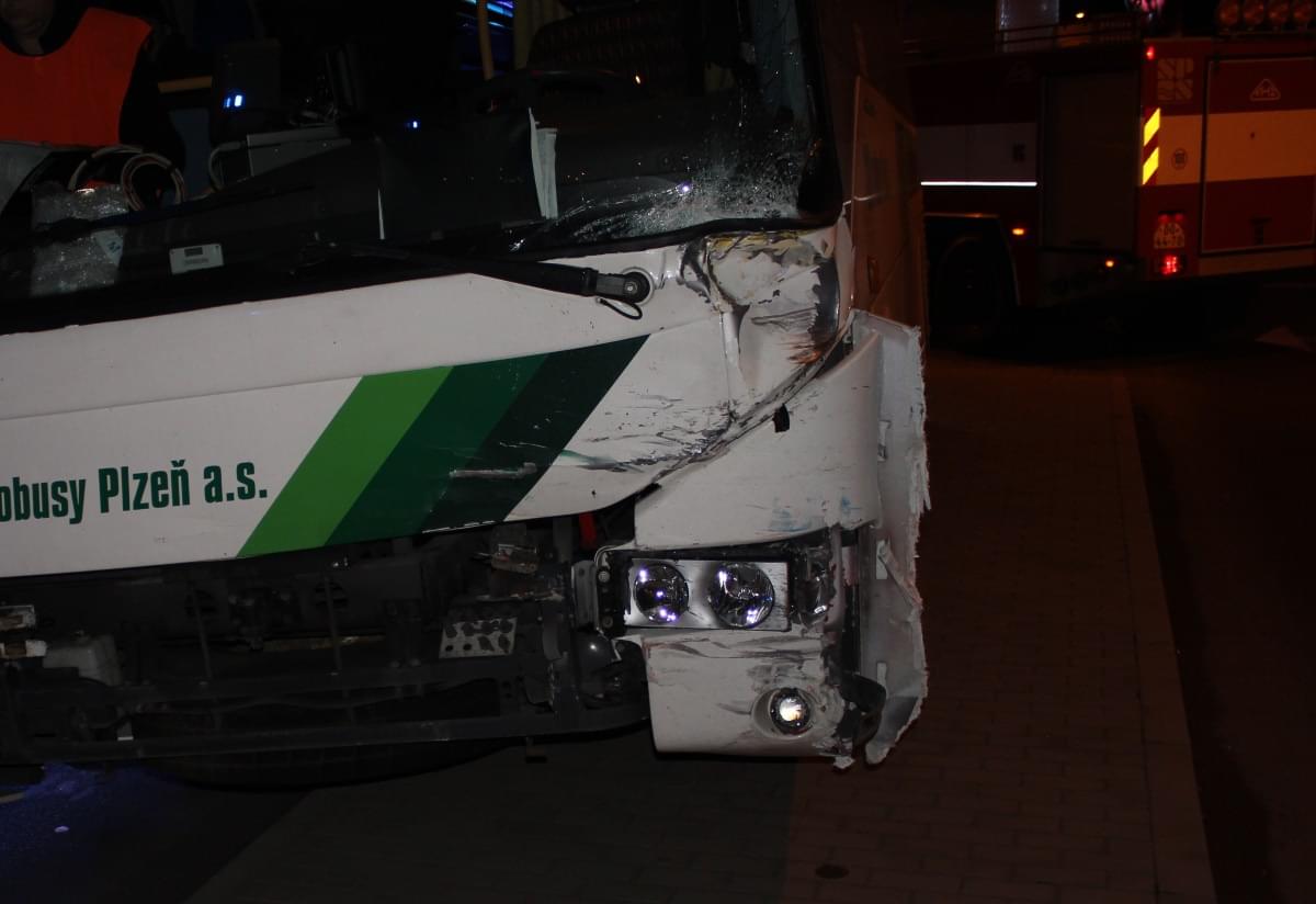 Mladá řidička osobního vozu vyjela z Regensburské ulice přímo pod autobus přijíždějící od Křimic a tak došlo k silnému nárazu autobusu do levého boku vozu. Autobus před sebou automobil tlačil ještě asi 7 metrů, než ho vytlačil do vybetonovaného odvodňovacího příkopu, kde se vůz částečně převrátil. Při nehodě utrpěla řidička škodovky zranění a zůstala ve voze zaklíněna, vůz bohužel vážně hrozil úplným převrácením.