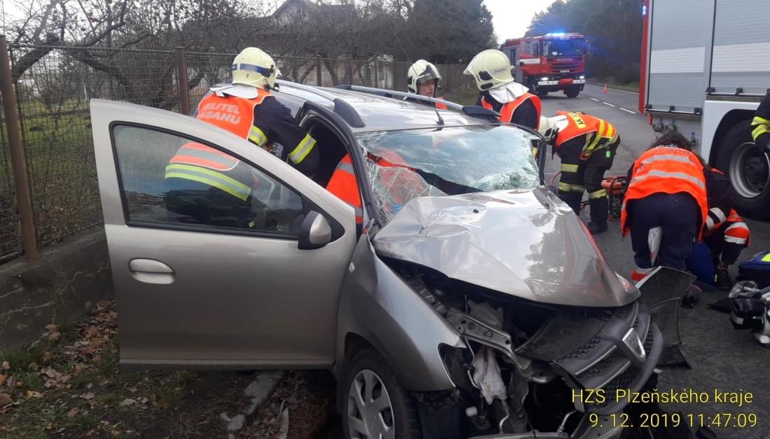 K vážné dopravní nehodě došlo dnes před polednem na křižovatce hlavního tahu z Plzně na Karlovy Vary a silnicí č. 180 na Nové hospodě u Nevřeně, kde se střetl nákladní vůz Plzeňského pivovaru s osobním autem Dacia.