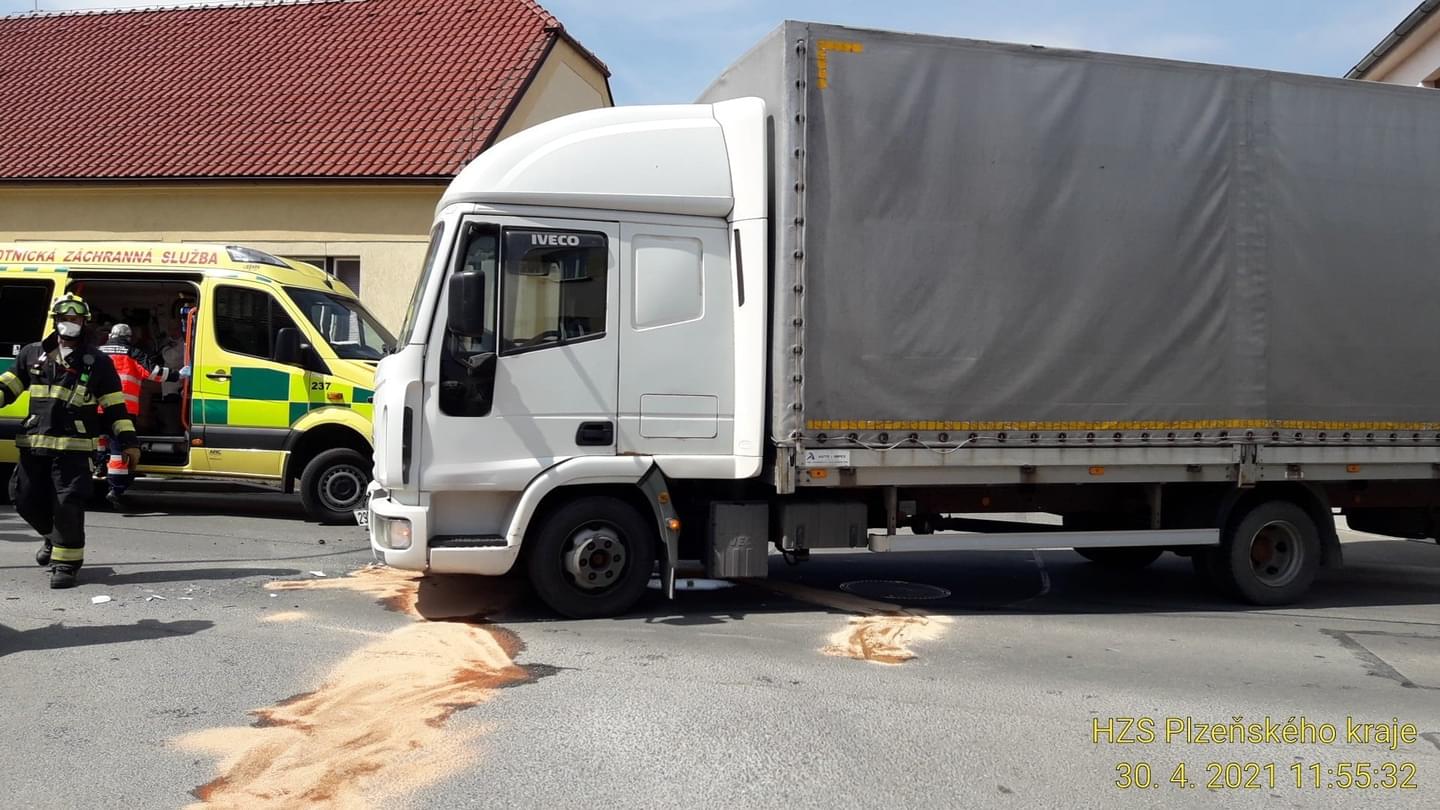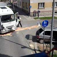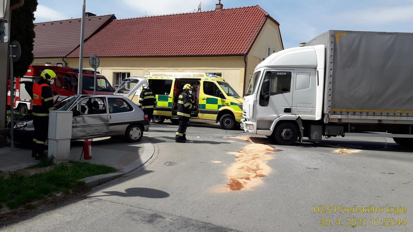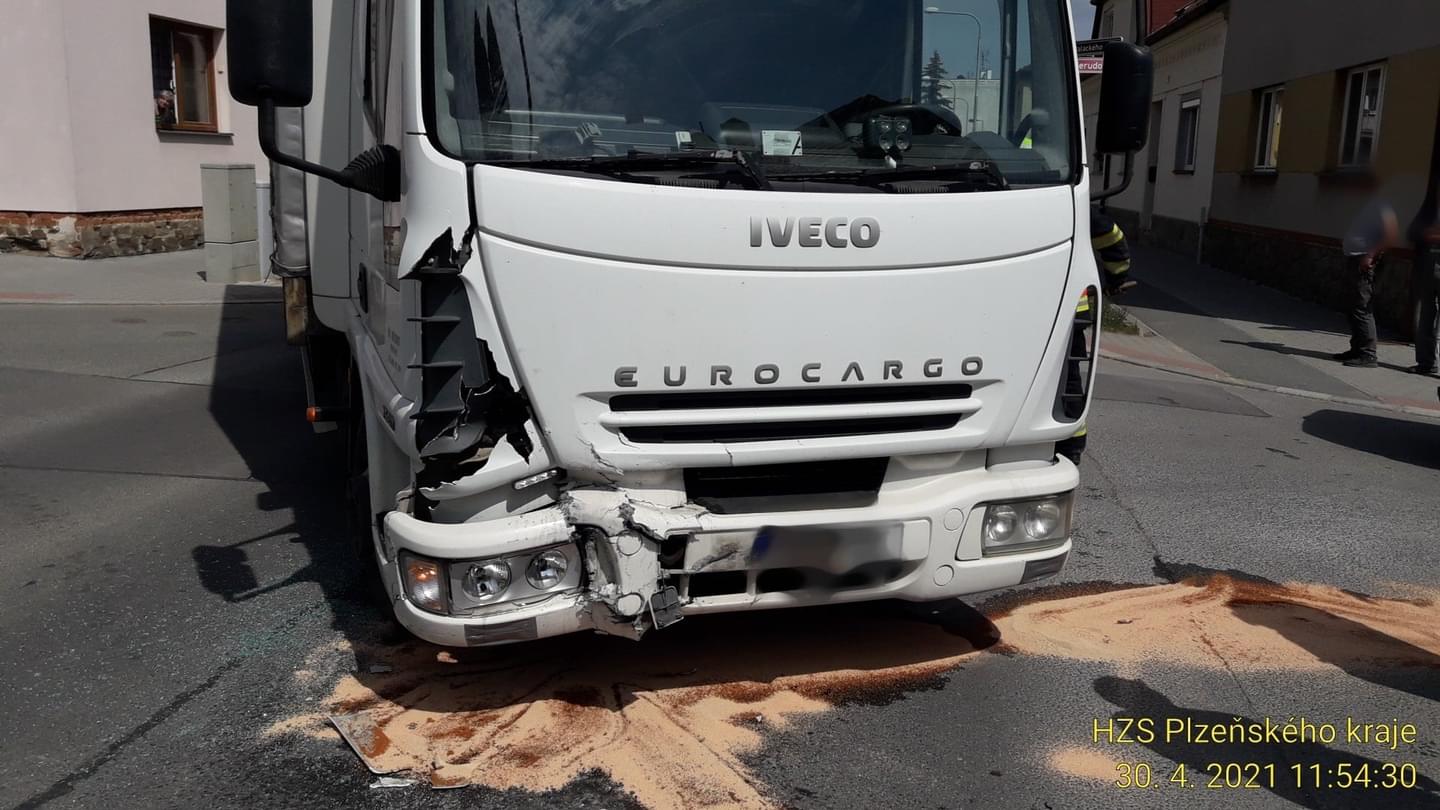 "Řidič osobního vozu narozený v roce 1947 jel ulicí Kotkova do Nerudovy ulice, když nedal přednost nákladnímu vozu řízenému mužem narozeným v roce 1967, který jel ulicí Palackého. Policisté u obou řidičů vyloučili požití alkoholu dechovými zkouškami," popsala tisková mluvčí policie s tím, že se policisté nehodou dále zabývají.