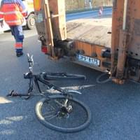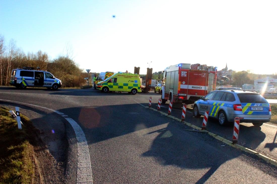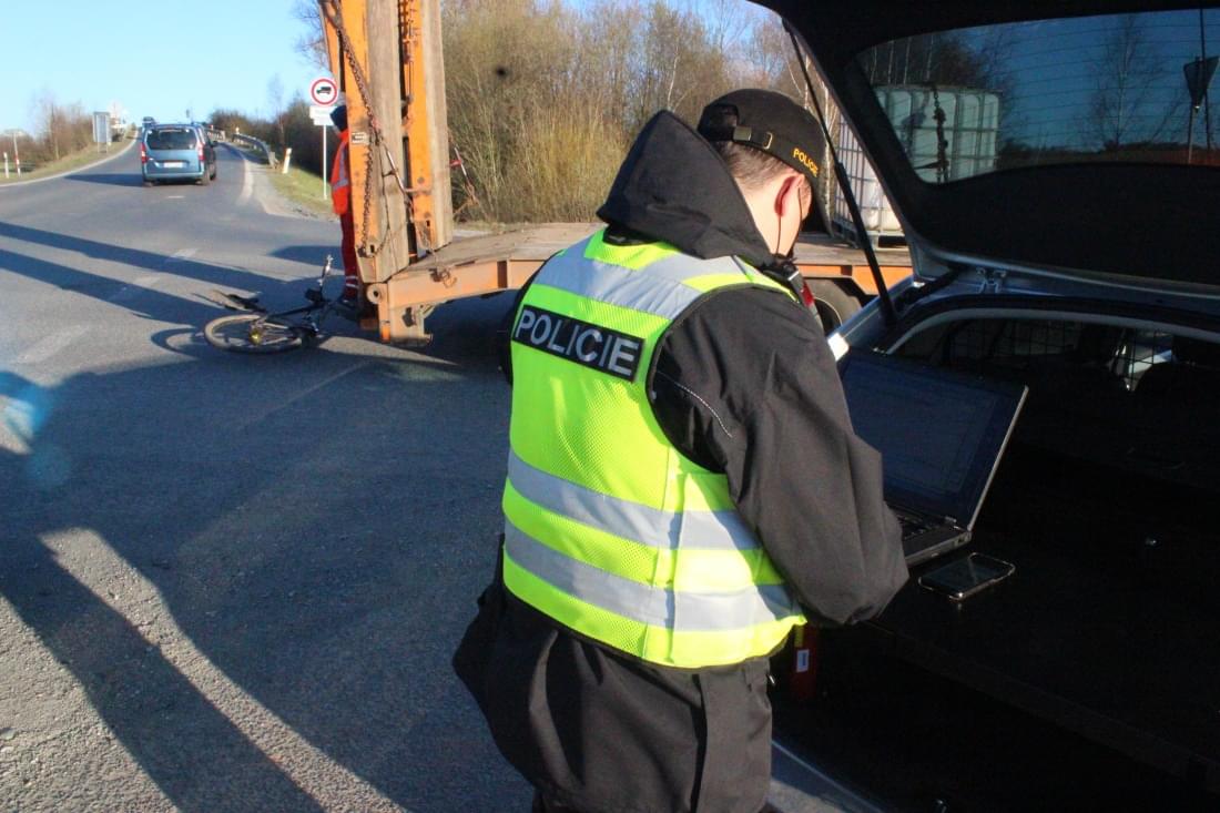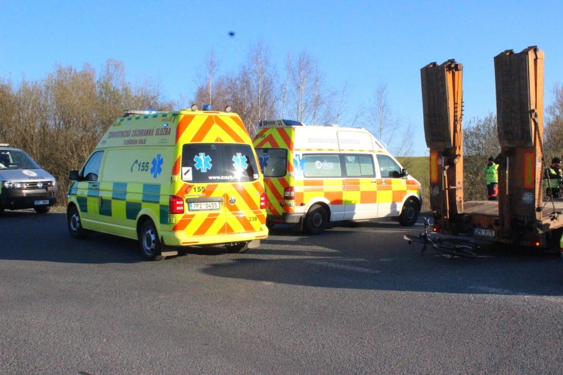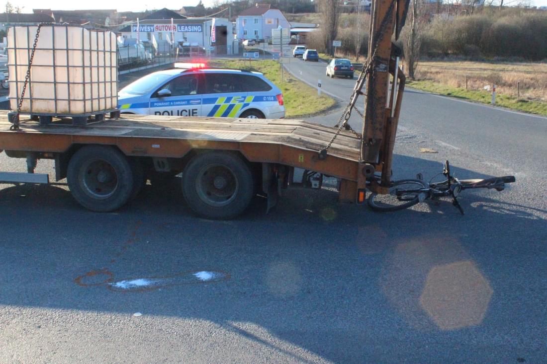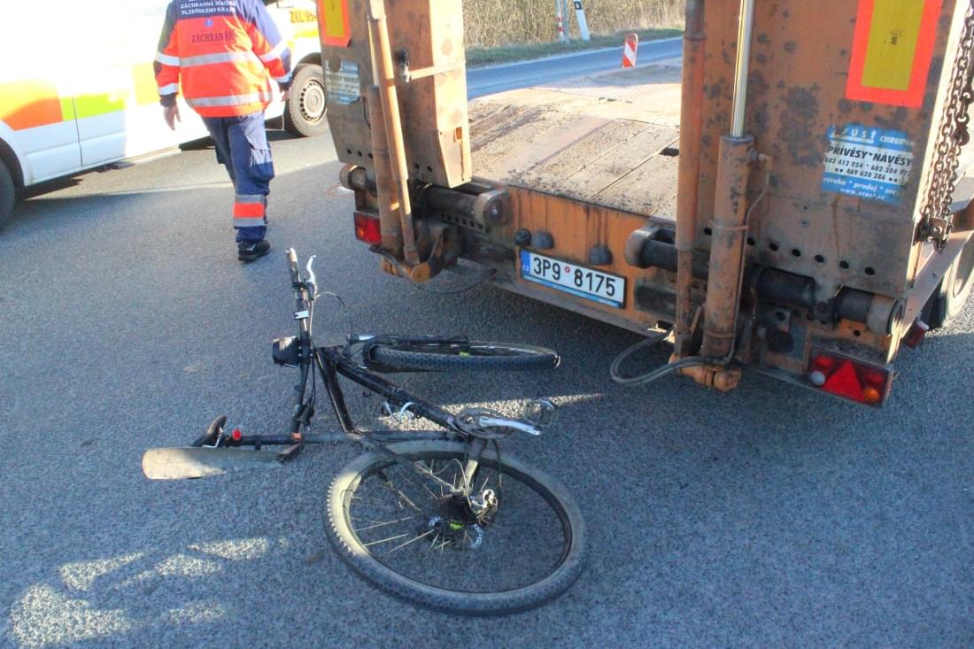Cyklista narazil do boku nákladního vozu, při střetu utrpěl zranění hlavy a zůstal částečně ležet pod přívěsem nákladního vozu, na místo proto vyjely všechny záchranné složky.