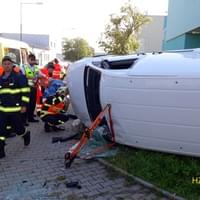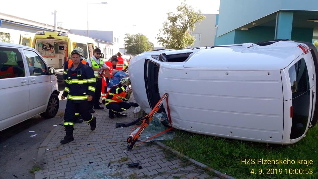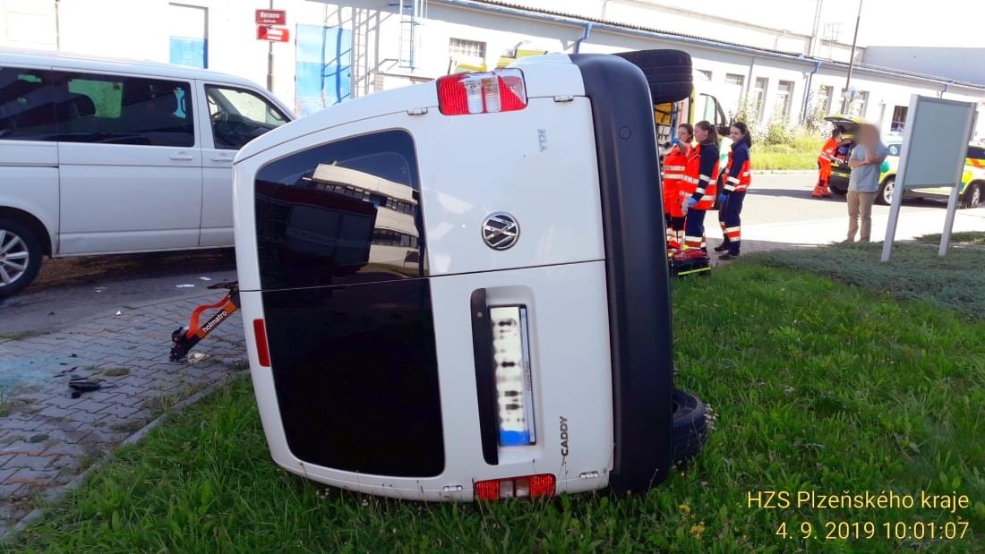 Caddy se po střetu převrátilo na bok, hasiči ho museli stabilizovat proti převrácení, zajistili místo události a zlikvidovali drobný únik provozních kapalin.