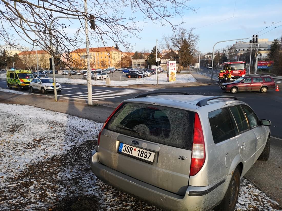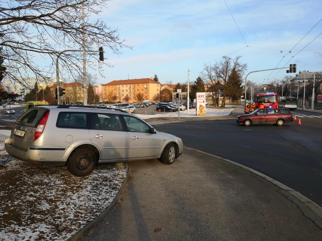 Dnes před devátou hodinou ráno došlo na křižovatce ulic Edvarda Beneše, Samaritská a 17. listopadu ke střetu dvou osobních vozů. Řidič vozu Ford Mondeo jedoucí od Fakultní nemocnice na Borech podle informací z místa nedal přednost seniorovi jedoucímu ze Samaritské do ulice 17. listopadu a došlo ke střetu, po kterém Ford vyjel mimo silnici a s vylomeným zadním kolem zůstal stát na trávníku.
