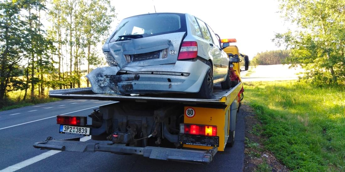 Včera před pátou hodinou odpoledne došlo nedaleko Draženova ke střetu odtahového vozidla s osobním autem.