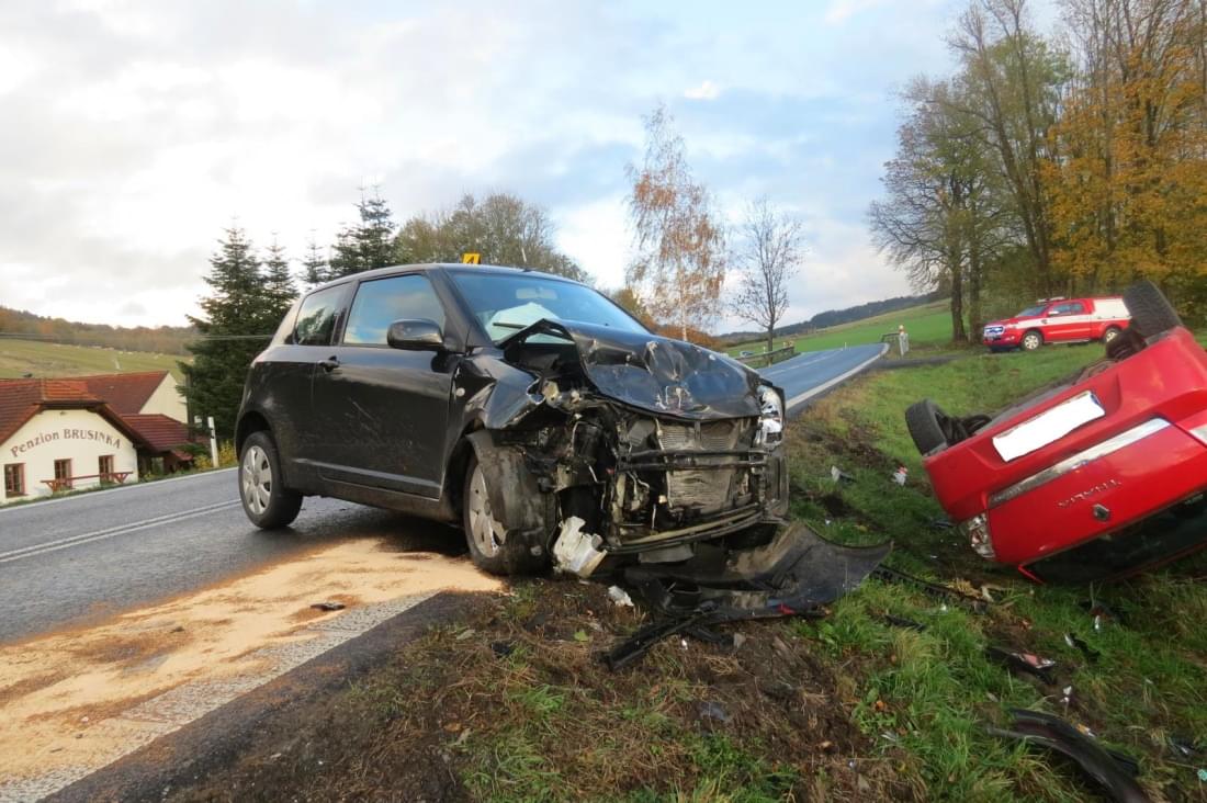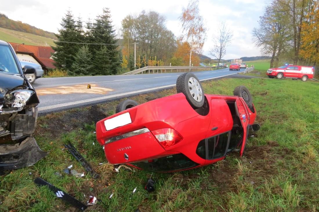 "Jednačtyřicetiletá žena řídila osobní automobil Renault Thalia ve směru od Zavlekova na Klatovy. Před Kocourovem při průjezdu pravotočivou zatáčkou v klesání nepřizpůsobila rychlost jízdy stavu vozovky a svým schopnostem a na mokrém povrchu vozovky dostala s vozidlem smyk. Následně narazila pravým bokem do svodidel na pravé straně komunikace, čímž byla odhozena zpět na vozovku a do protisměru, kde rovněž pravým bokem došlo ke střetu s protijedoucím osobním automobilem Suzuki Swift sedmačtyřicetileté řidičky," popsala tisková mluvčí policie. Po střetu vozidlo Renault navíc vyjelo vlevo mimo komunikaci, kde se v silničním příkopu převrátilo na střechu. Vůz Suzuki zůstal po střetu na vozovce.