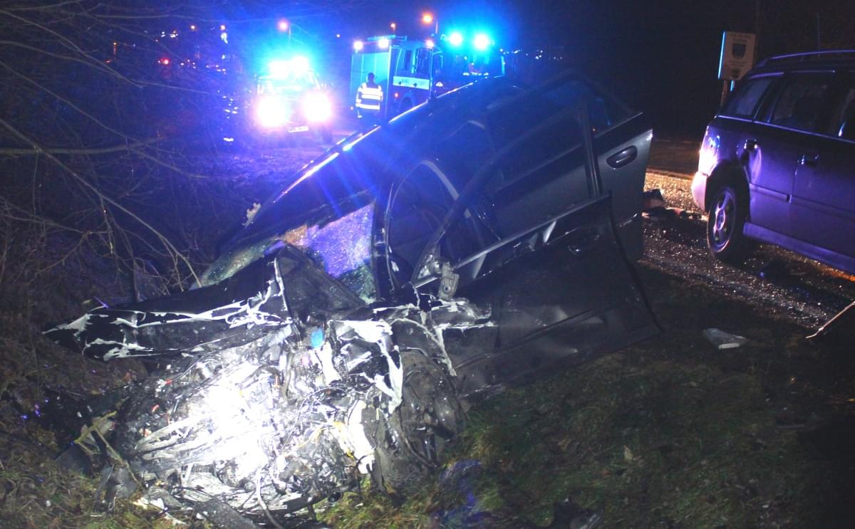 V Audi cestovala mladá maminka se svým přítelem, dvěma dceruškami a jejich babičkou. Jen velmi obtížně si můžeme představit, co se uvnitř vozu dělo během dvou krátce po sobě jdoucích silných nárazech a následné havárii do příkopu. Následky jsou ale strašlivé, vážná zranění utrpěla celá rodina.