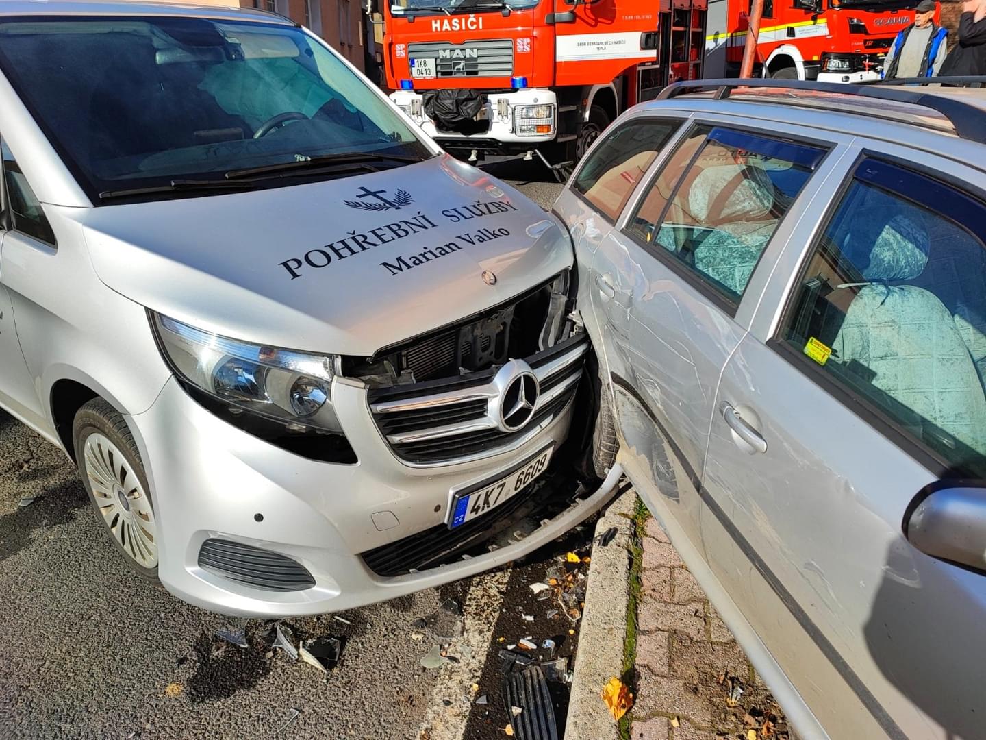 Řidič pohřebního vozu ani jeho spolujezdec zranění neutrpěli.