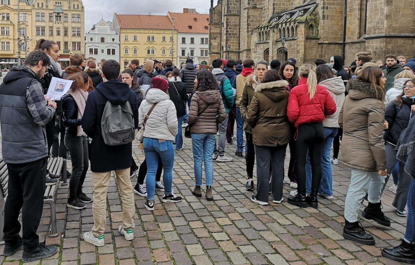 My jsme se dnes odpoledne na náměstí Republiky, kde se k další pátrací akci sešla více než stovka mladých lidí, setkali s organizátory studentské pátrací akce, kteří nás požádali o zveřejnění výzvy, aby opravdu kdokoli, kdo má o zmizelém studentovi jakékoli informace, se obrátil na policii a pomohl tak jeho nalezení.