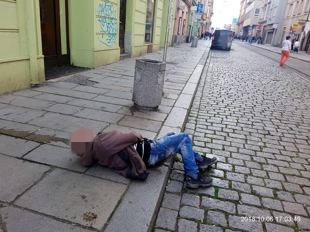 Nejprve hlídka našla v Solní ulici ležet pokáleného a pomočeného muže z Polska, který se ani s její pomocí se nezvládl postavit na nohy.