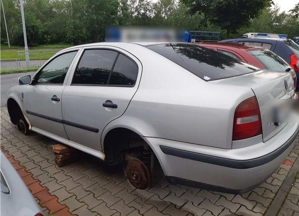 Na policii se včera obrátil poškozený majitel auta s tím, že jeho zaparkované auto nestojí na kolech, ale na cihlách.