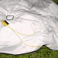 V souvislosti s tragickou nehodou při seskoku padákem, ke které došlo tento pátek, policisté v Klatovech pátrají po dvou částech padáku, vyobrazených na fotografii.