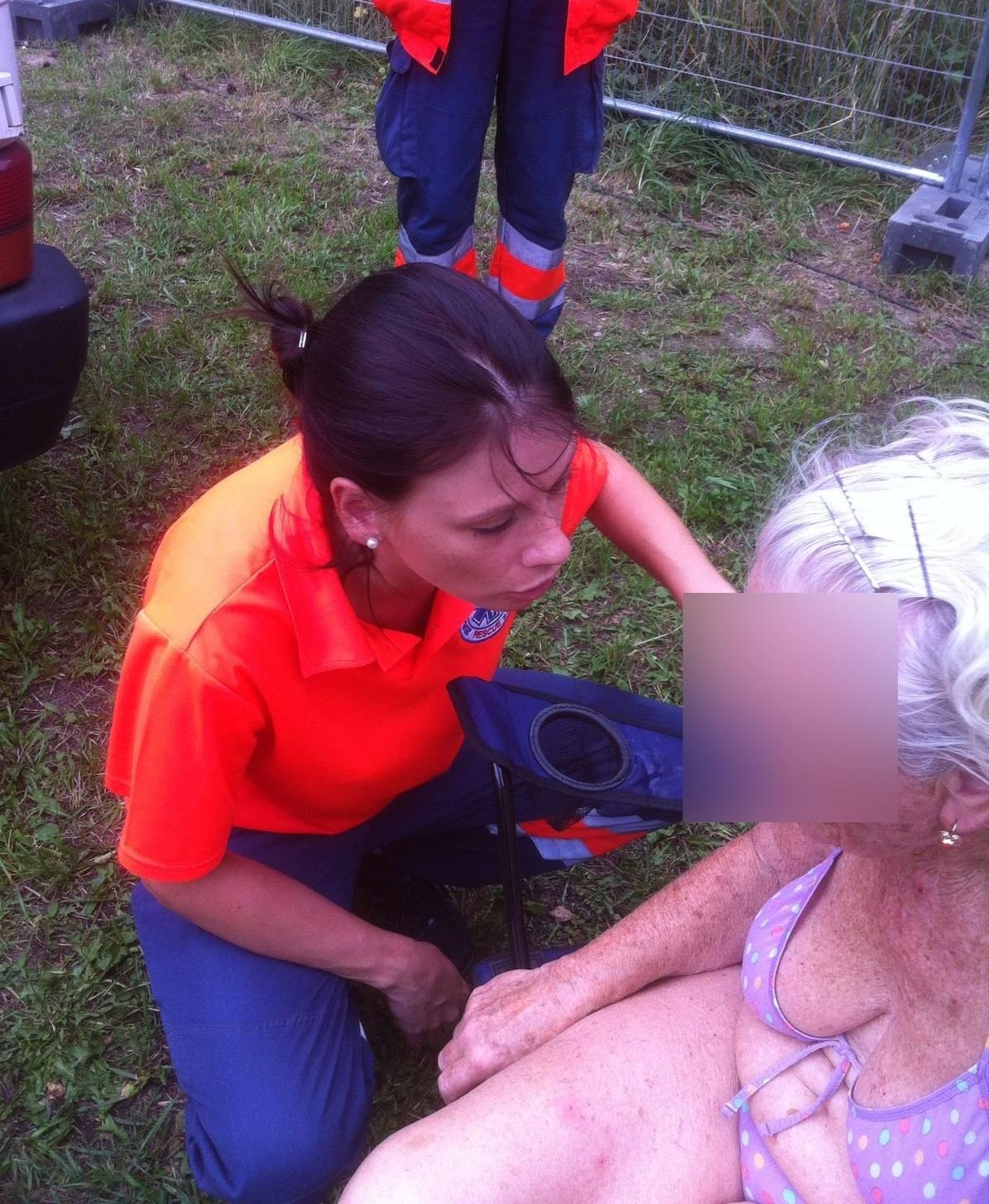 Pomoc tedy okamžitě nabídla hlídka policistů z OHS, kteří chtěli babičku odvést domů, ale zjistilo se, že má věci kdesi na břehu a nepamatuje si kde. Na pomoc tedy pro změnu vyrazili hasiči, pláž prohledali a stařence věci nalezli. Následně se již babička mohla domů projet policejním vozem, což se jí velmi líbilo.