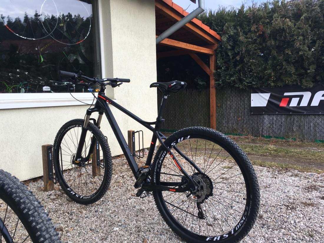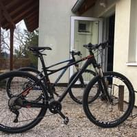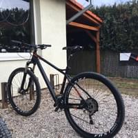 Kolo má hliníkový rám velikosti 19", kola 29", pneu Schwalbe, brzdy, kliky(duté), přesmykač, přehazovačka, převody 2x10, veškeré komponenty Shimano Deore, vidlici Suntour XCR AIR s uzamykáním vidlice na řídítkách. Na kole jsou neonově oranžové decentní nálepky viz foto, černý a oranžový plastový držák lahve a držák cyklosedačky Hamax.