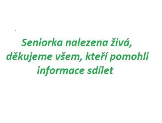 Paní ..... z domova odešla kolem desáté hodiny dopoledne z domova ..... v Plzni, od té doby se může pohybovat kdekoli a již může být vysílená.