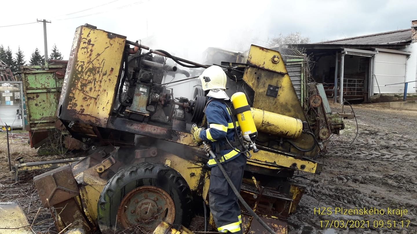 Dnes dopoledne po deváté hodině došlo v zemědělském družstvu v Chodově na Domažlicku k požáru zemědělského stroje. Na místo vyjeli jak profesionální hasiči z Domažlic, tak i jejich dobrovolní kolegové z SDH Chodov a SDH Klenčí pod Čerchovem. Hasiči požár zlikvidovali a momentálně na místě probíhá šetření, které má určit příčinu i výši škody.