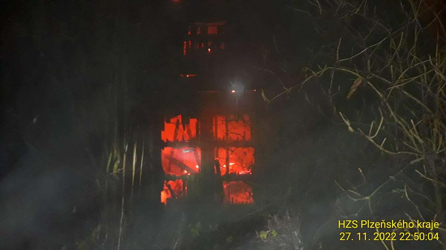 V noci na dnešek kolem desáté hodiny vyjíždělo pět jednotek hasičů k požáru budovy v Lestkově na Tachovsku.