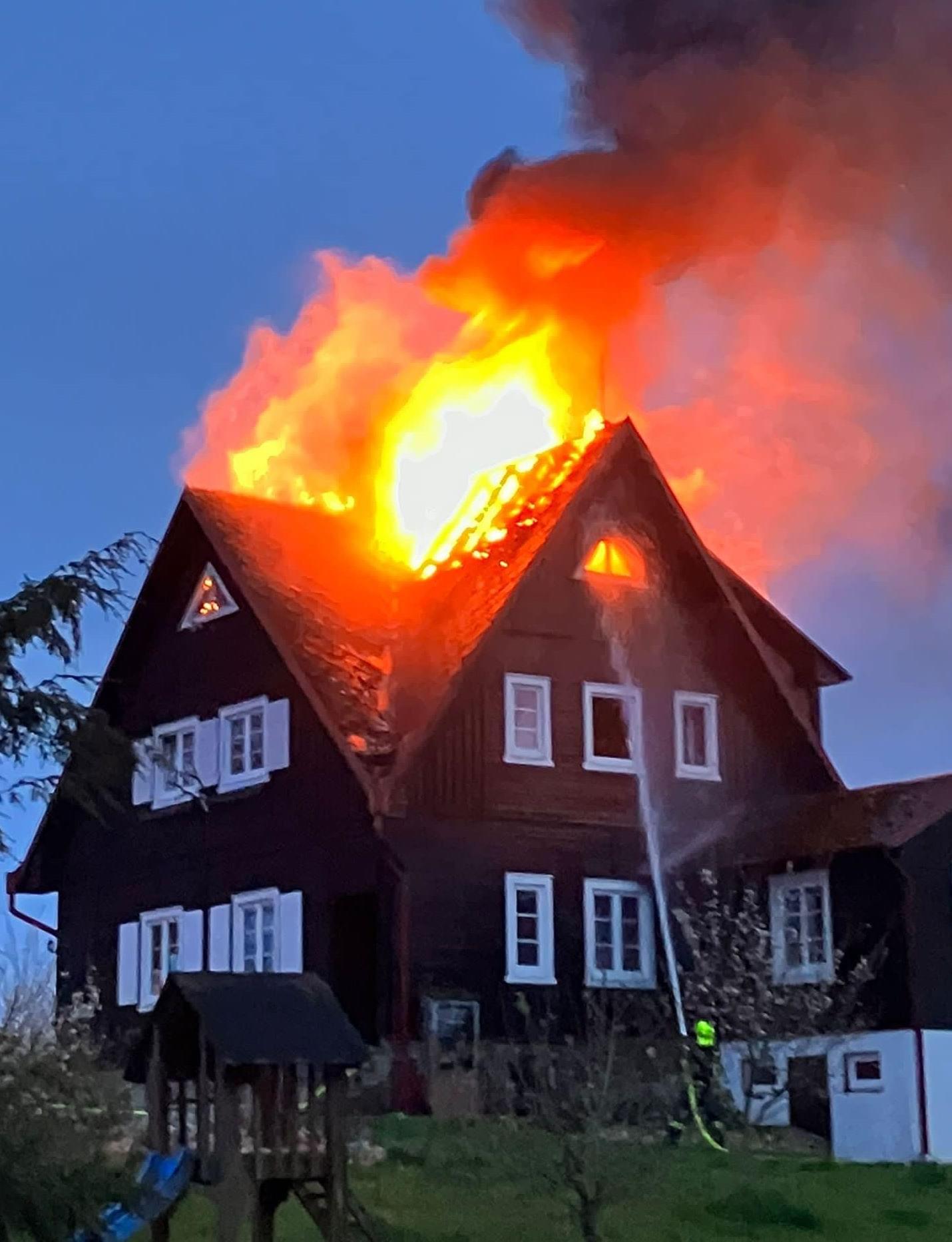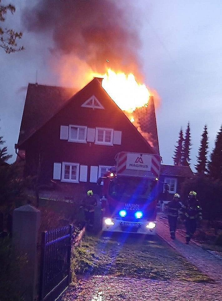 Včera večer v půl deváté byl nahlášen požár hájovny ležící nedaleko obce Svatá Kateřina na Tachovsku s tím, že jde o vícepatrovou dřevěnou budovu a oheň již zachvátil podkroví i střechu.