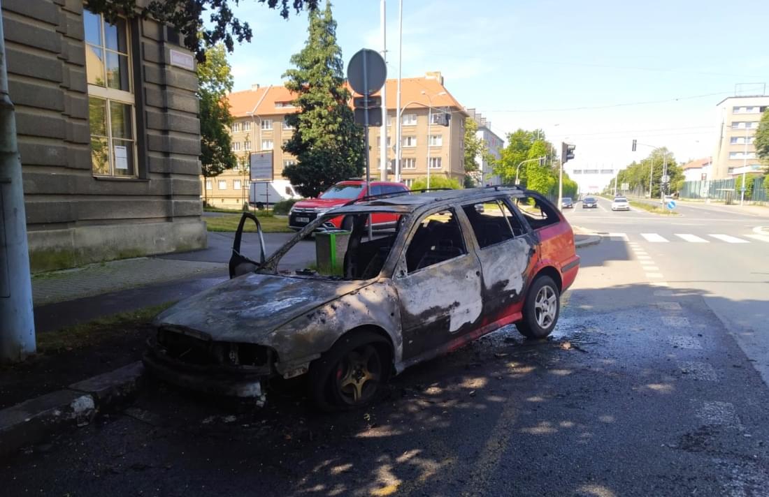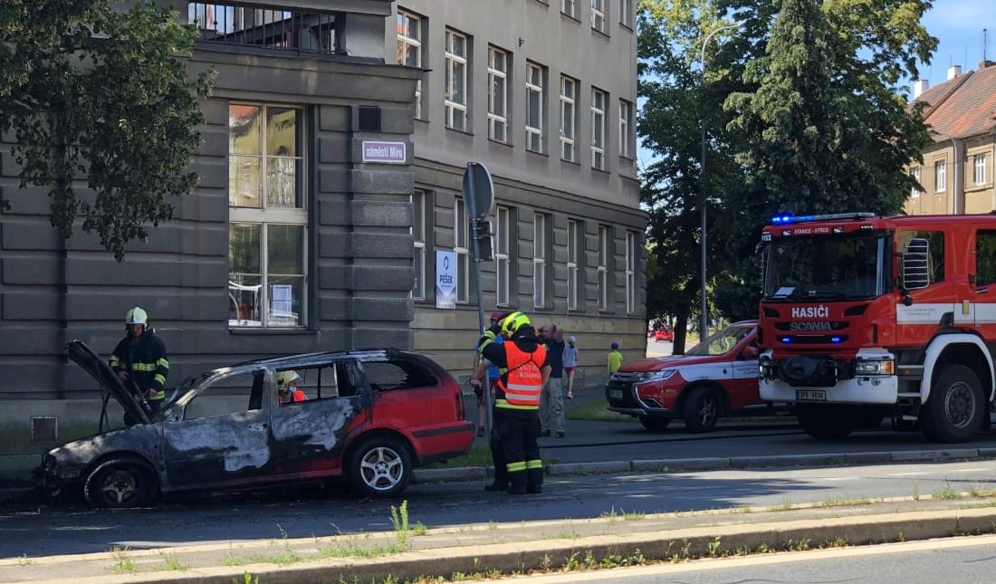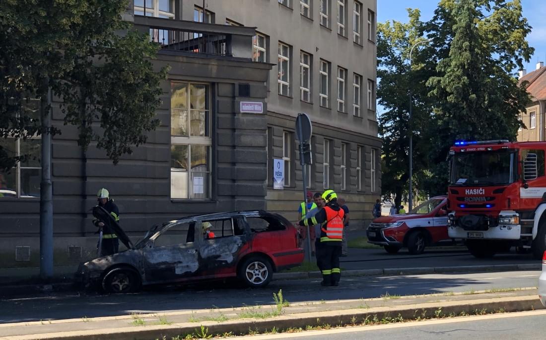 Dnes kolem půl desáté dopoledne vyjížděli hasiči ze stanice Plzeň Střed k požáru osobního vozu Škoda Octavia před budovou Střední průmyslové školy strojnické a Střední odborné školy profesora Švejcara na křižovatce Klatovské třídy a ulice 17. listopadu.