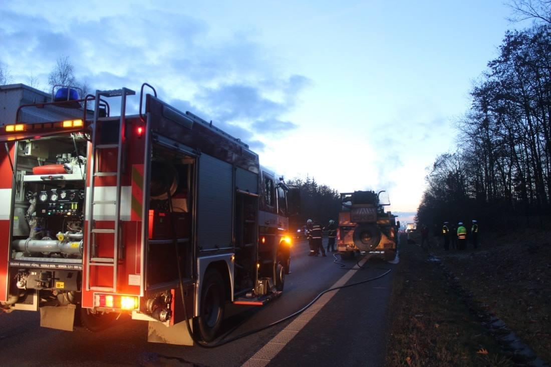 Požár je v této chvíli již uhašen a provoz je omezen na jeden jízdní pruh.
