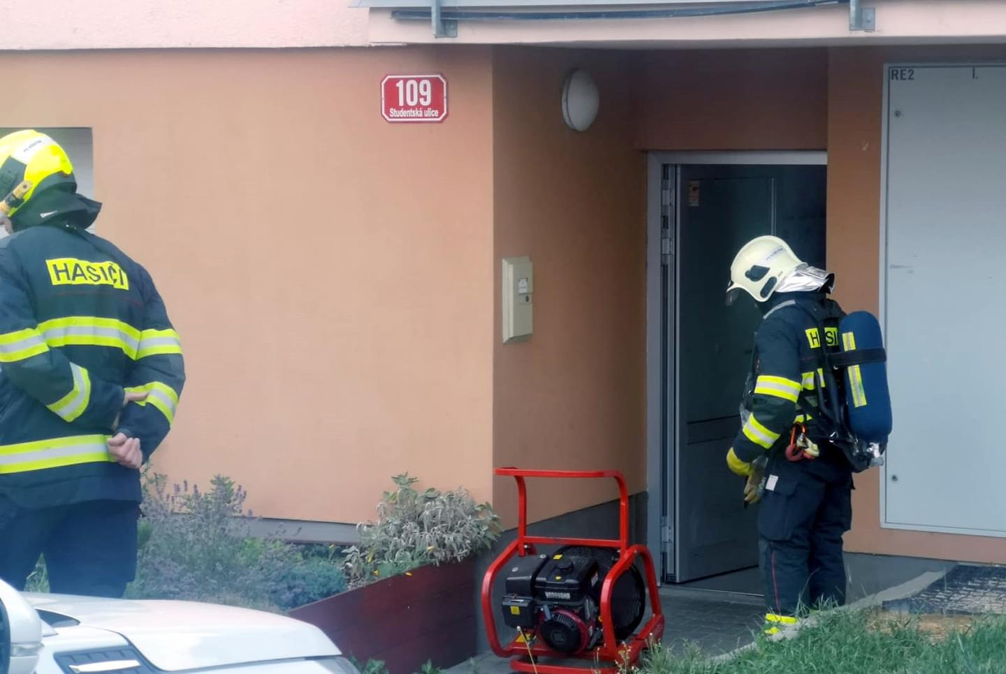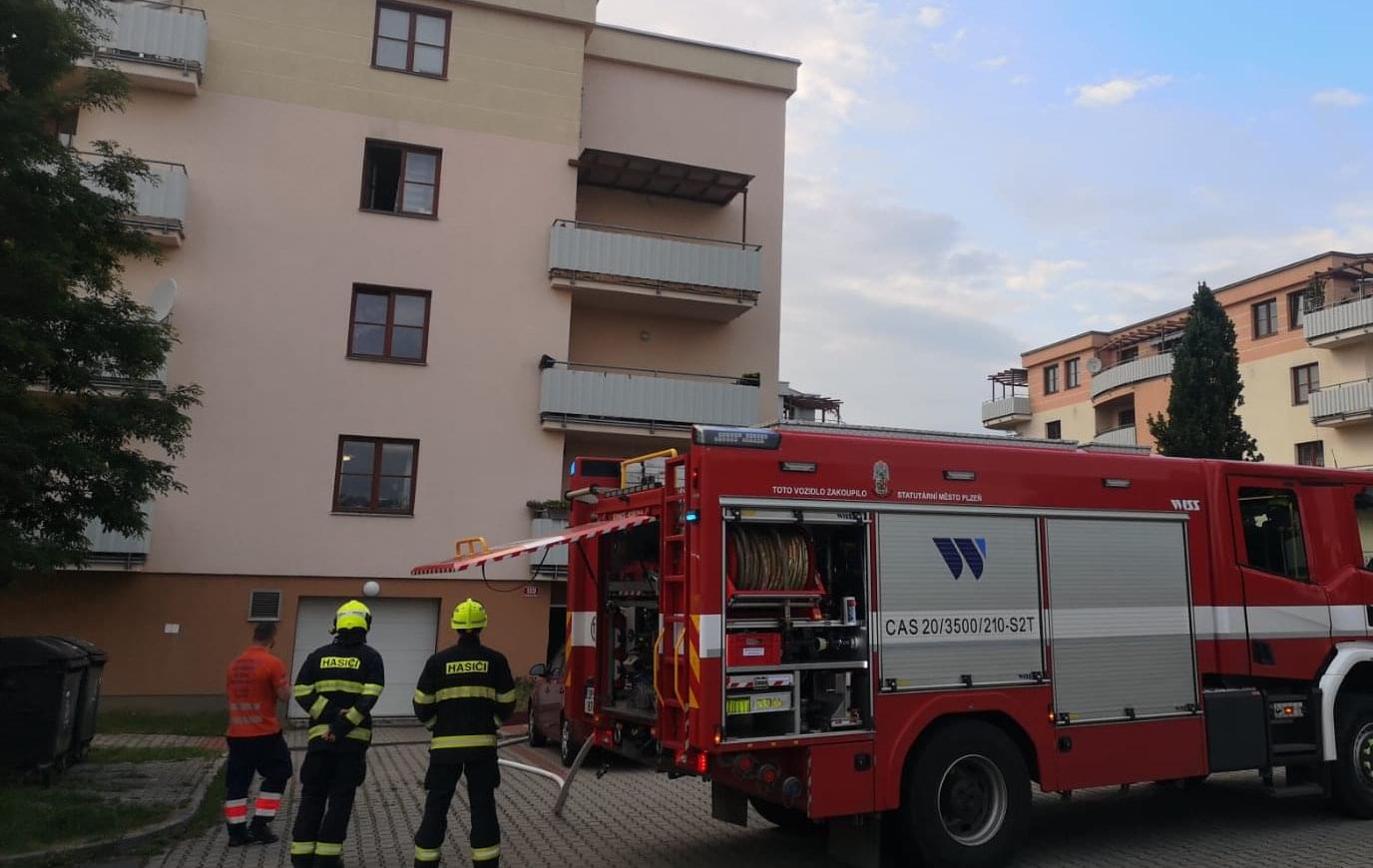 Dnes před půl osmou večer došlo v Plzni ve Studentské ulici k požáru bytu v druhém patře obytného domu. Podle oznamovatelů byl po chodbě domu velice silně cítit zápach hořícího plastu, takže okamžitě volali hasiče a k požáru vyjeli jak profesionální hasiči z Plzně - Středu, Košutky tak i jejich dobrovolní kolegové ze Bolevce.