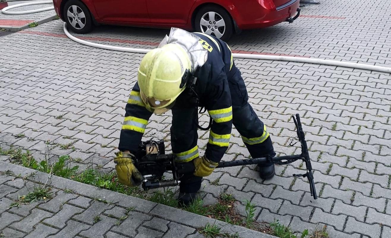 Vyšetřování příčin požáru nyní na místě provádí vyšetřovatel hasičů. Jedna z možných verzí příčiny zahoření je baterie elektrokoloběžky, na oficiální zprávu ale ještě čekáme.