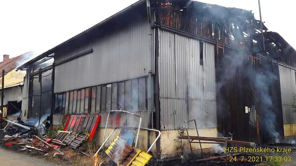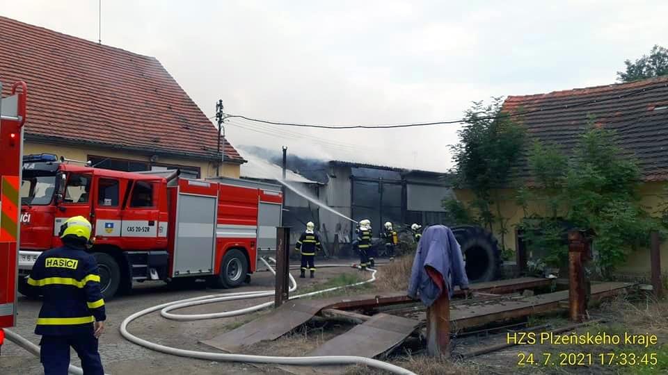 Dnes odpoledne po páté hodině došlo v Havlíčkově ulici v Chotěšově k požáru dílny, kde se opravují zemědělské stroje. Na místo vyjeli profesionální hasiči z Nýřan, Přeštic, Staňkova a jejich dobrovolní kolegové z Líní, Dobřan, Zbůchu, Stodu a Chotěšova. "Z vnitřku budovy jsme vynesli tlakové lahve a škoda přesáhne zřejmě milion korun," uvedl mluvčí hasičů. Zásah v tuto dobu na místě stále ještě probíhá.