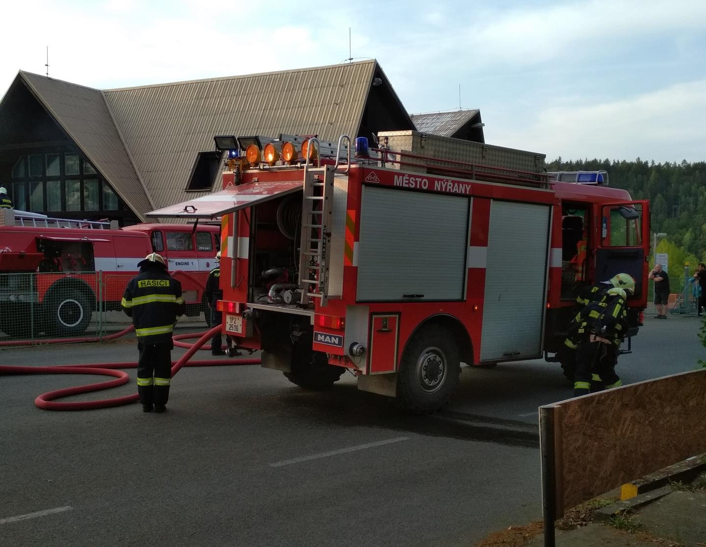 Na místě nyní probíhá kontrola, zda opravdu nedošlo k přenosu na zděnou budovu hotelu a příčina požáru a výše škody bude předmětem šetření.