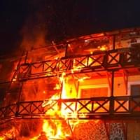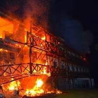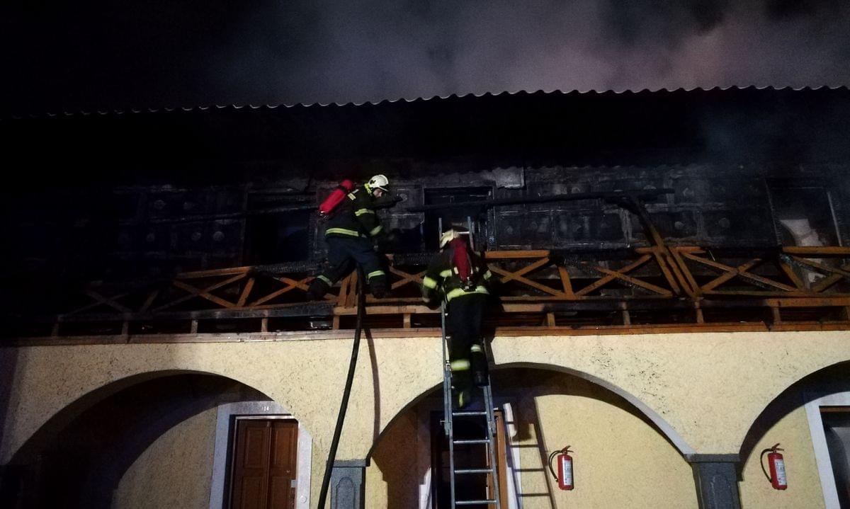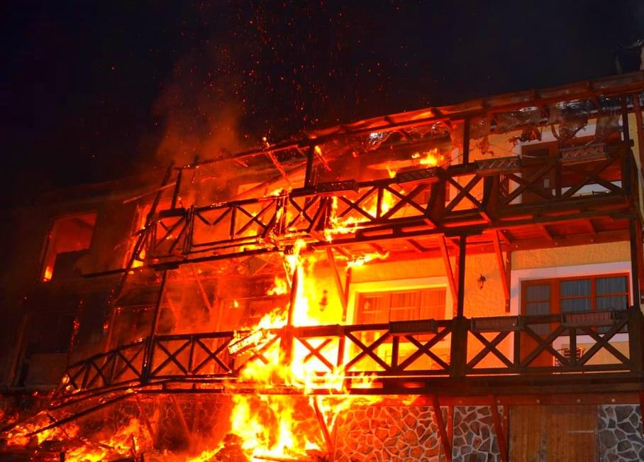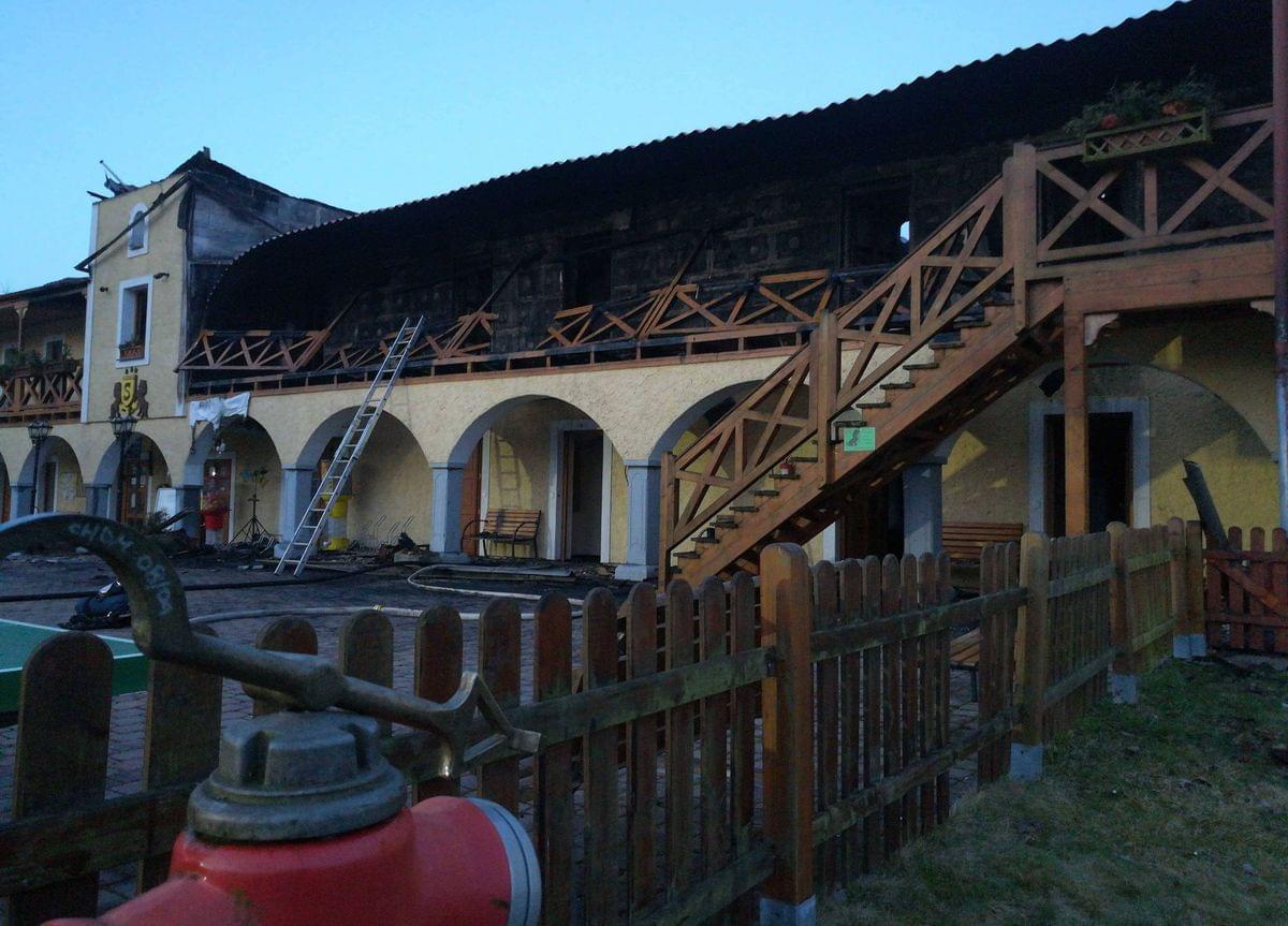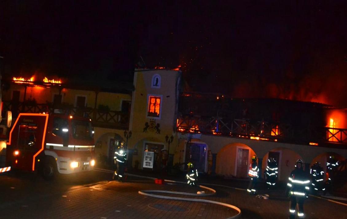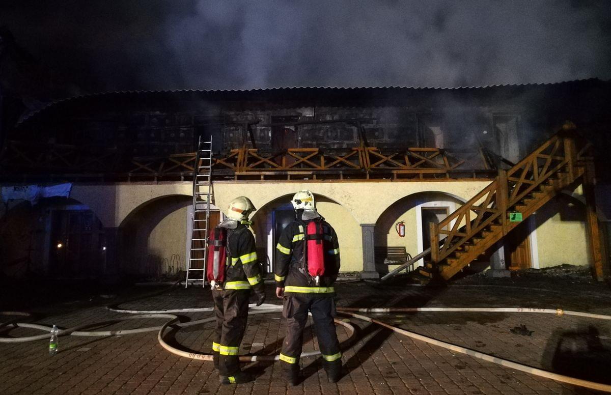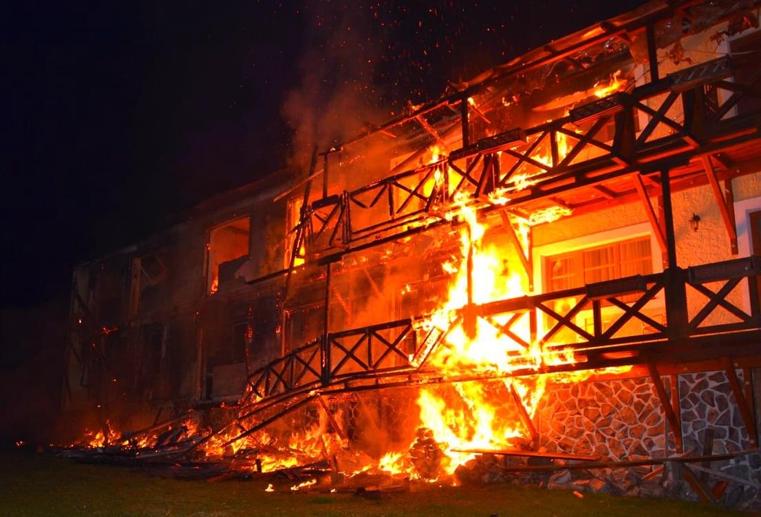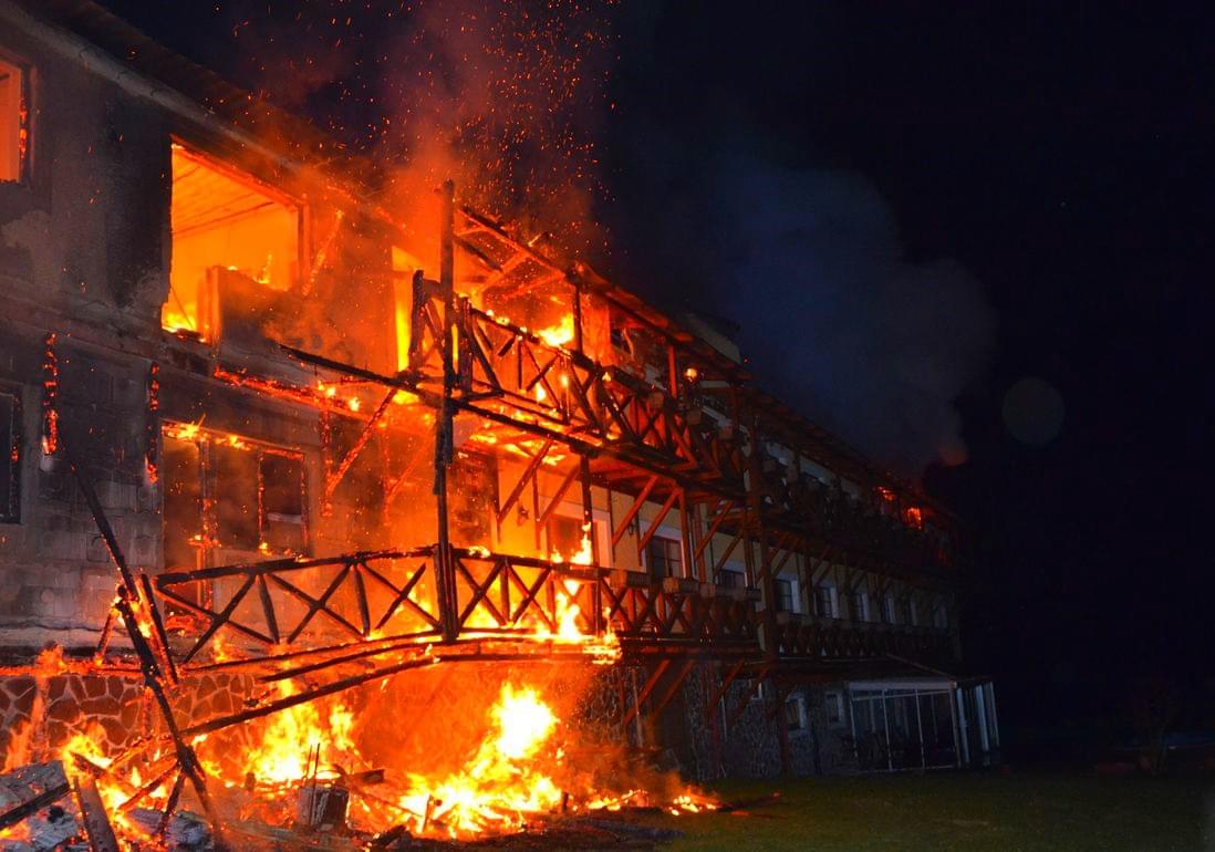 Požár byl hasičům nahlášen krátce po jedné hodině v noci a první jednotky hasičů byly na místě deset minut od oznámení. V té době byla zasažena střecha jedné z ubytovacích částí hotelu a také celé druhé nadzemní podlaží a část střechy se mezitím již zřítila.