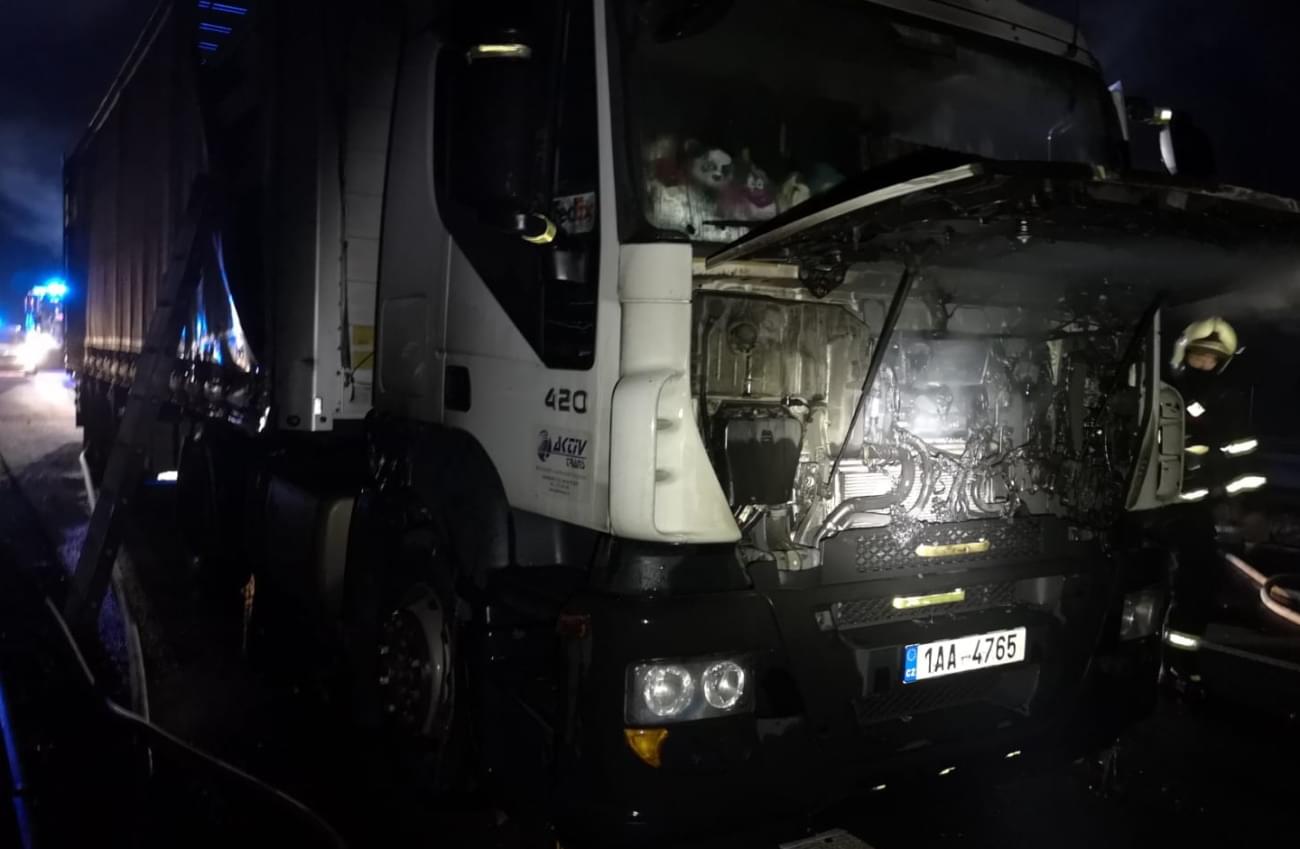 První foto svědek - hořící kamion za jízdy
