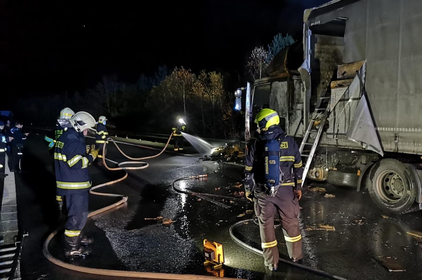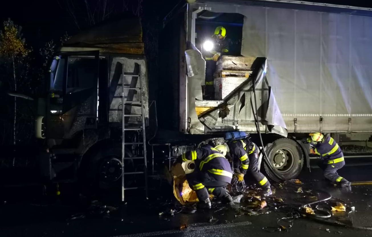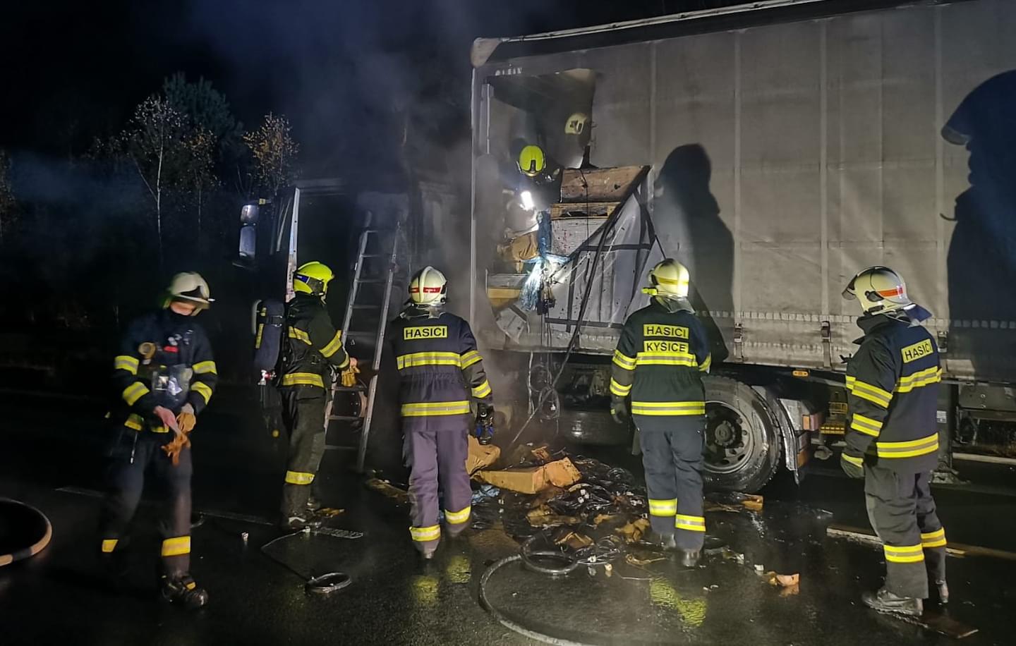 Hasiči museli kromě lokalizace požáru pod kabinou také z návěsu vyložit část nákladu zasaženého ohněm a prolít ho vodou. Kvůli silně toxickému dýmu z izolace kabelů museli v návěsu pracovat v dýchacích přístrojích. Celý kamion hasiči průběžně kontrolovali pomocí termokamery, aby odhalili případná skrytá ohniska.