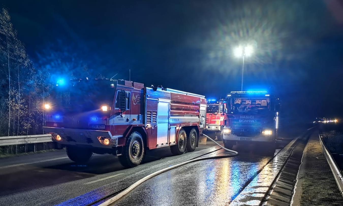 Včera před desátou hodinou večer došlo k požáru kamionu ve stoupání ve směru na Plzeň na přivaděči z dálnice D5 u Ejpovic. Oheň se podle svědka začal za jízdy rozšiřovat od nádrže a po zastavení zasáhl jak kabinu, tak částečně i nákladový prostor. Kamion převážel náklad mimo jiné elektrických kabelů pro Automotive.