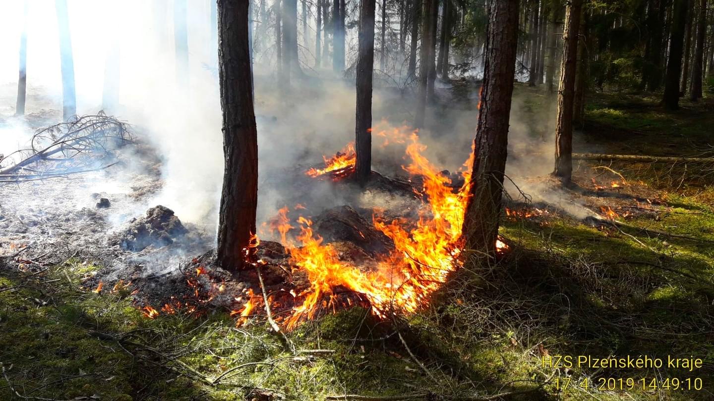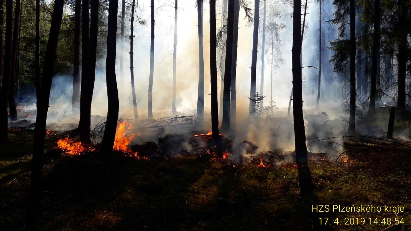Od druhé hodiny odpoledne bojují hasiči z osmi jednotek s požárem hrabanky v lese u Kostelce nedaleko Stříbra. Hoří zde plocha přibližně 200 x 200 metrů.