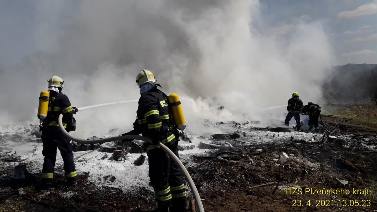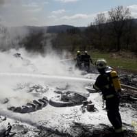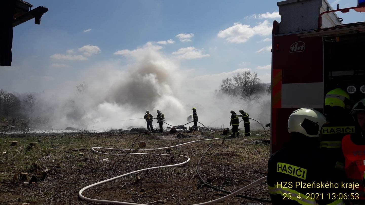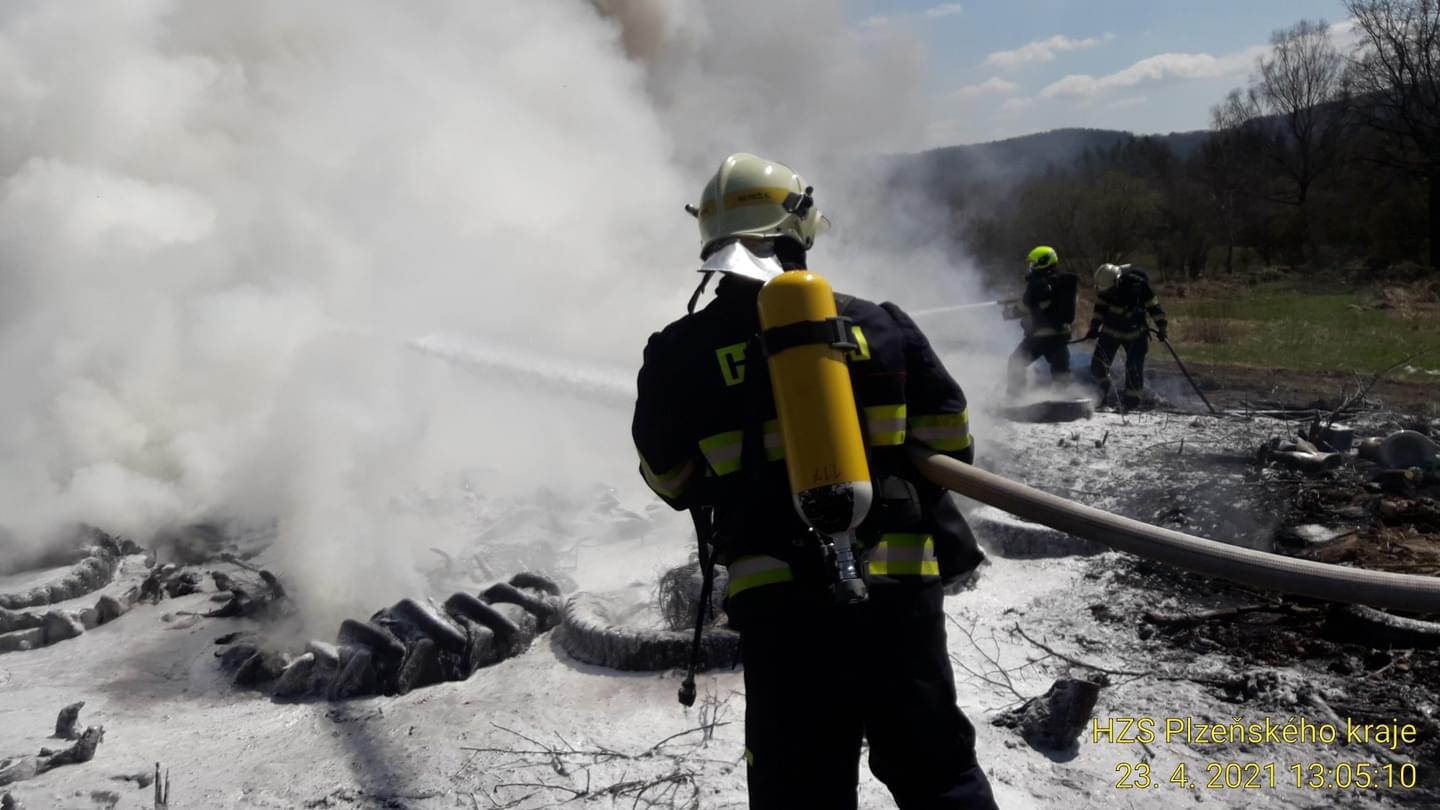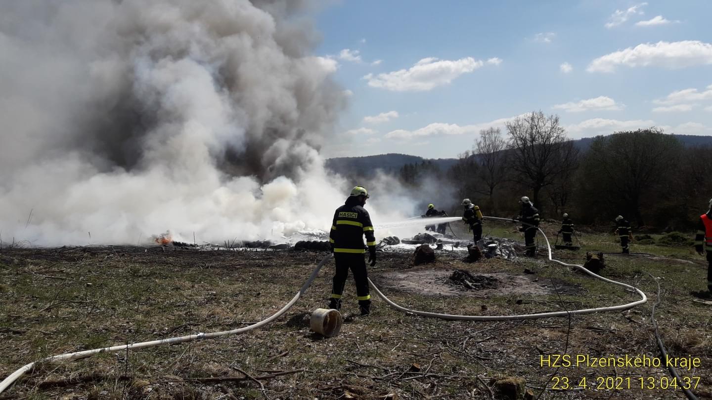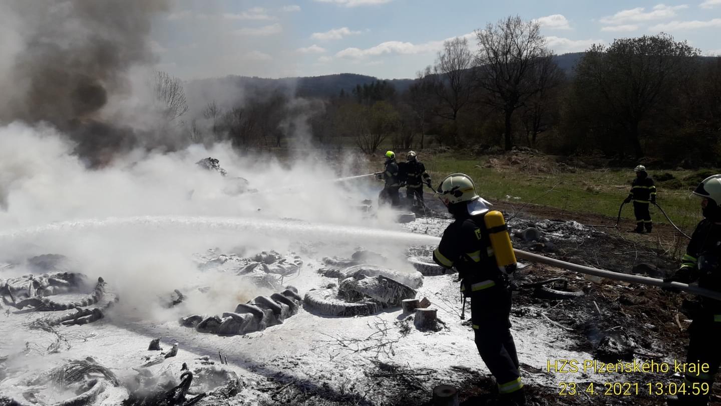 Čtyři jednotky profesionálních i dobrovolných hasičů dnes od půl druhé odpoledne zasahují v Nové Vsi u Nepomuka, kde došlo v areálu zemědělského podniku k požáru hromady pneumatik. "Požár vznikl nedbalostí při nahlášeném pálení dřevěného odpadu. Na místě byla jedna popálená osoba," uvedl tiskový mluvčí hasičů. "Šestačtyřicetiletého muže jsme transportovali na akutní zónu do Fakultní nemocnice Plzeň Lochotín," doplnila mluvčí záchranářů.