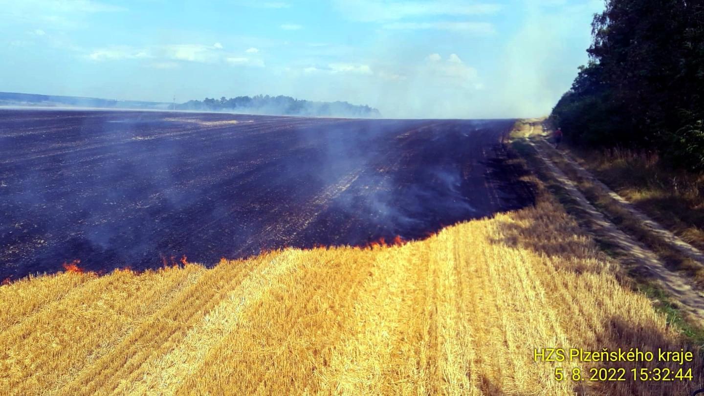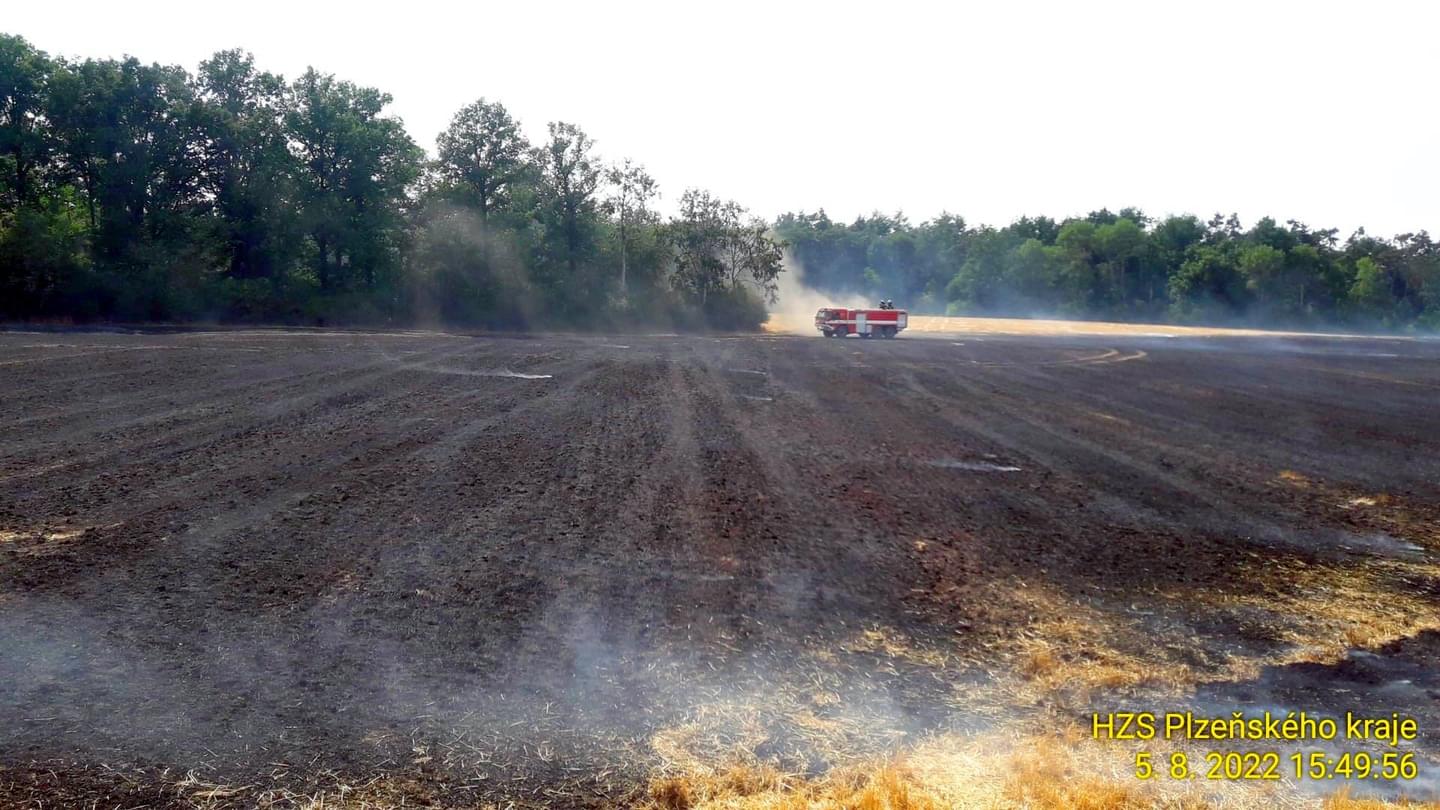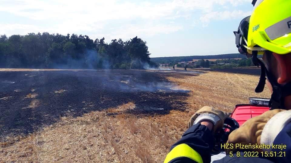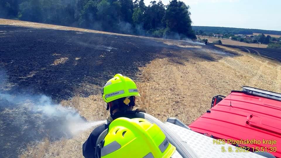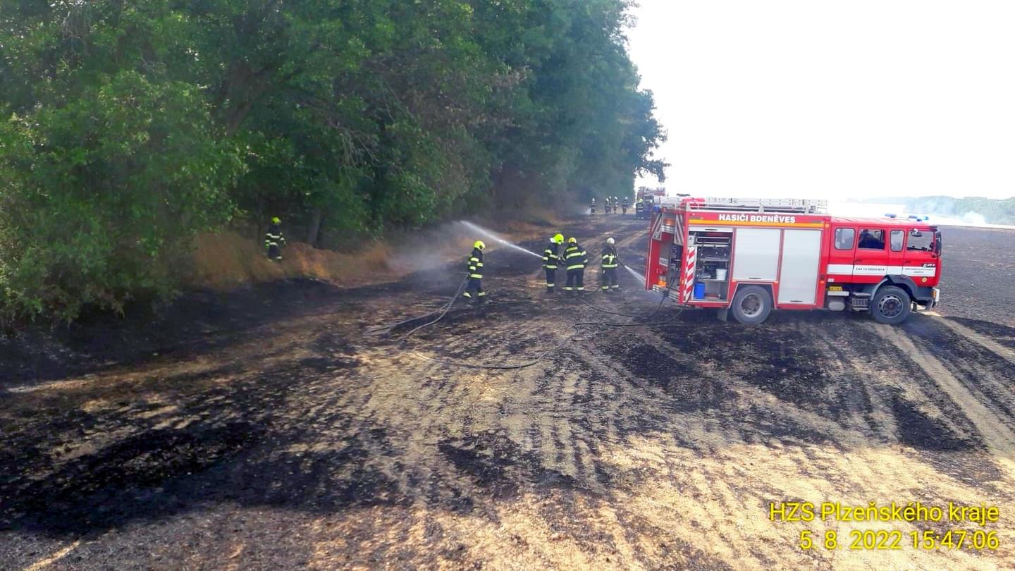 K dalšímu požáru v tuto chvíli vyjížděli hasiči i do trojúhelníku Vosí, Vícenice, Otín na Klatovsku. Oheň zde zasáhl přibližně devět hektarů trávy a také menší kousek lesa. Poplach byl vyhlášen pěti jednotkám hasičů, kterým se již podařilo požár lokalizovat.