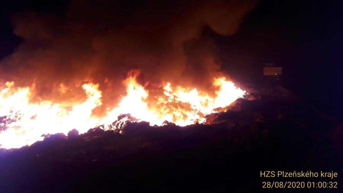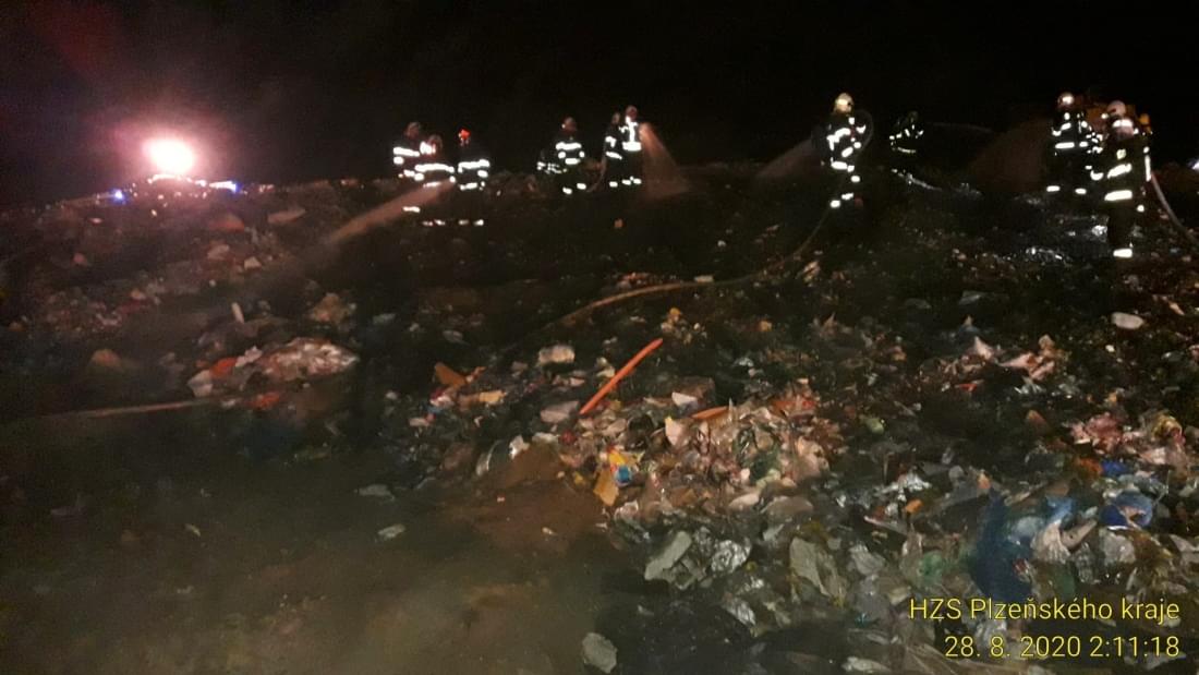 Dvanáct jednotek hasičů vyjíždělo v noci na dnešek před jednou hodinou ráno k Černošínu na Tachovsku, kde došlo k požáru skládky odpadu.