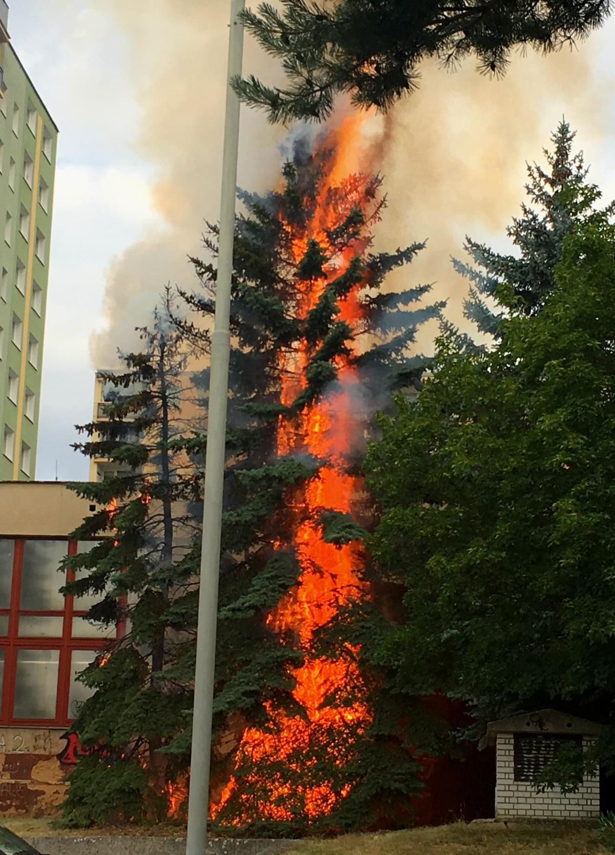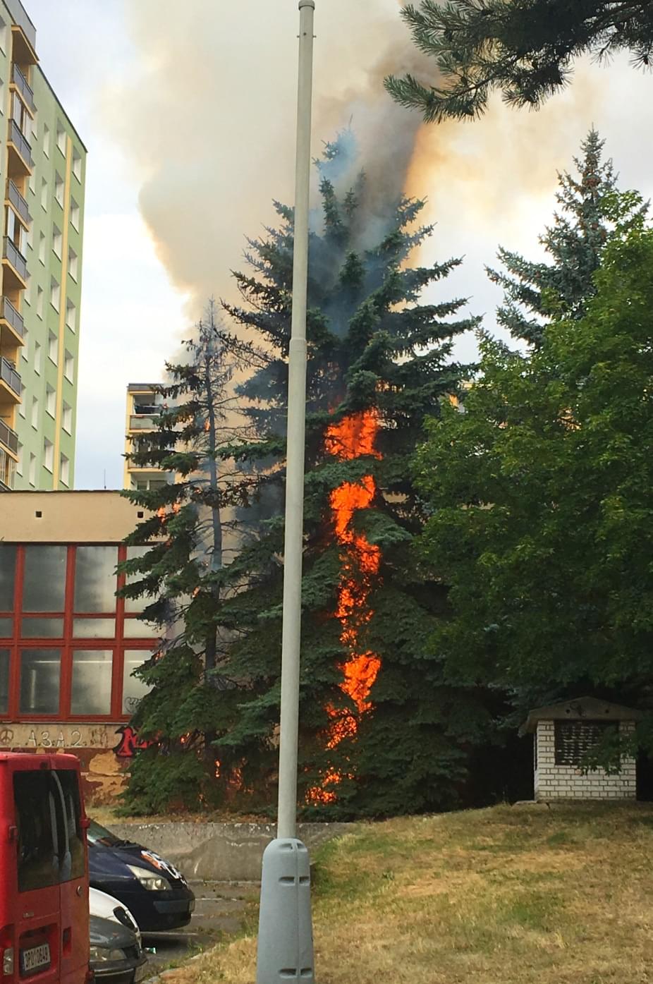 Dnes těsně před osmou ráno zpozorovala žena požár vzrostlého jehličnanu v Nýřanské ulici v Plzni a okamžitě zavolala hasiče. Hasiči dostali informaci o tomto požáru od více volajících, na místo dorazili ve velice krátké době a požár zlikvidovali. Bohužel strom je ohněm zcela zničený.