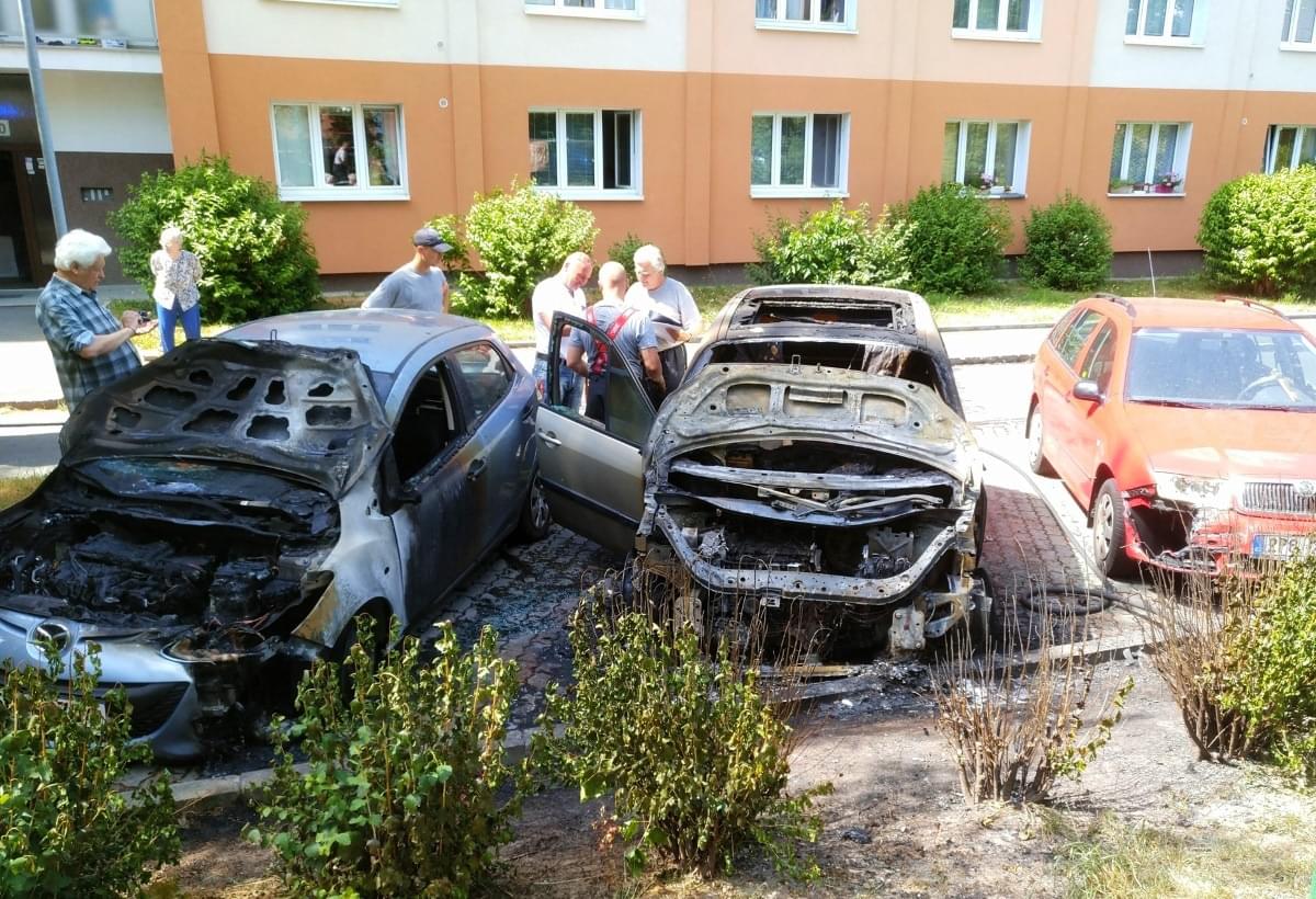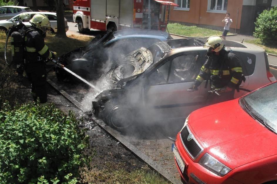 Dnes po druhé hodině odpoledne museli hasiči i policisté vyjet k požáru jednoho, respektive v krátké době již tří osobních vozů zaparkovaných ve Smrkové ulici v Plzni na Doubravce. Podle všeho jako první začal hořet Renault, od kterého chytila i vedle stojící Mazda a oheň poškodil i Škodu Fabia.