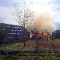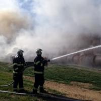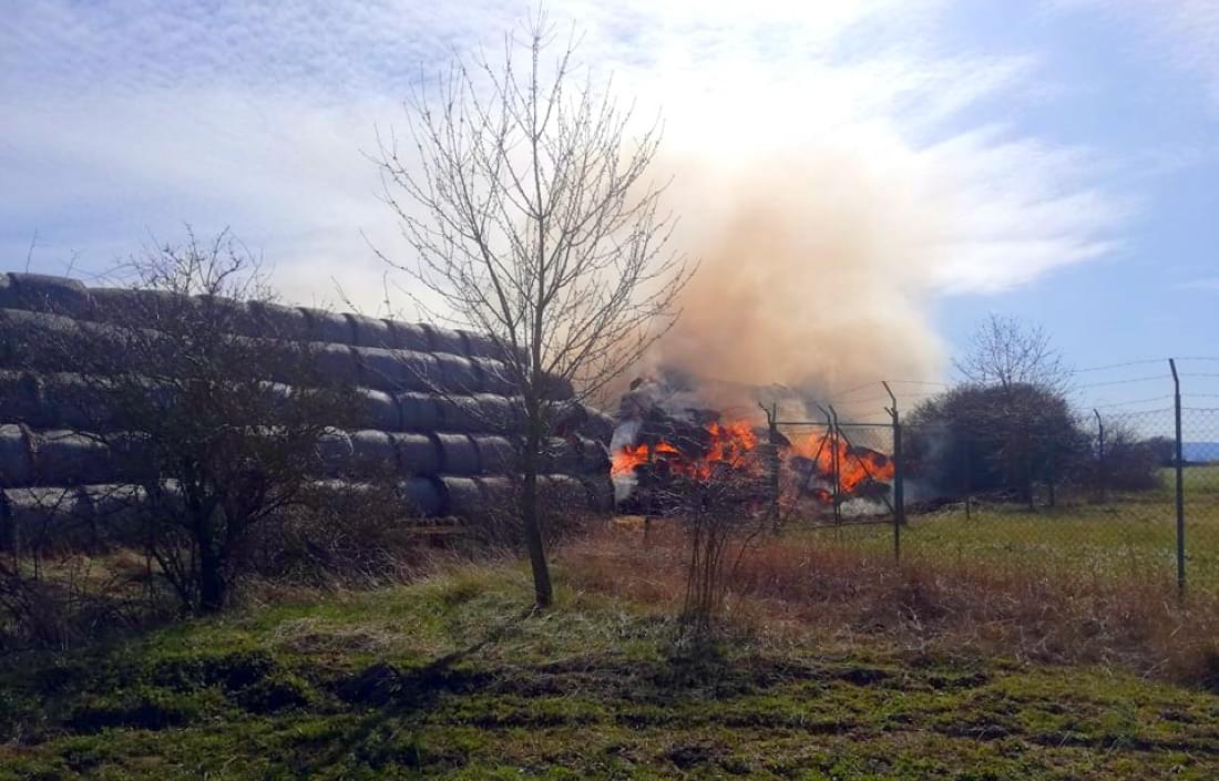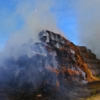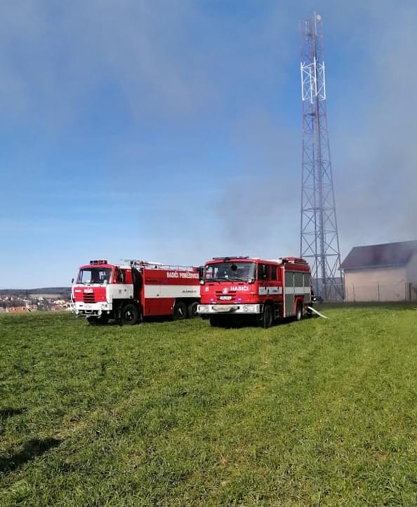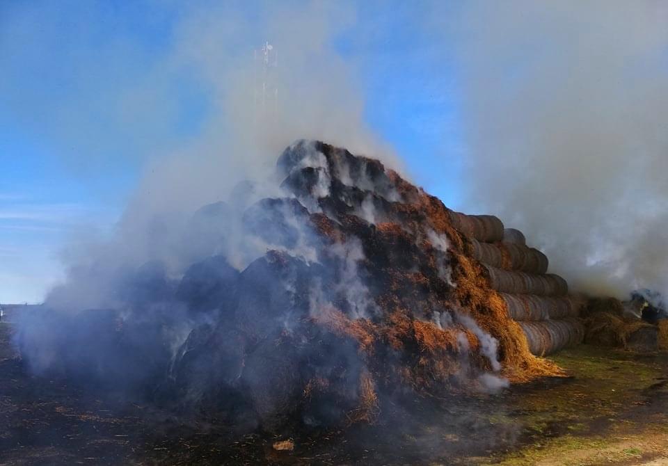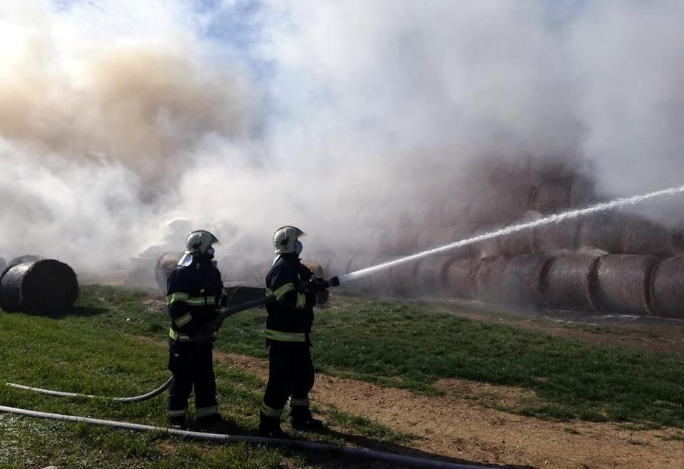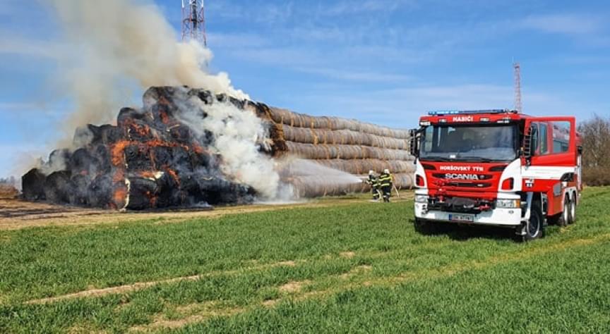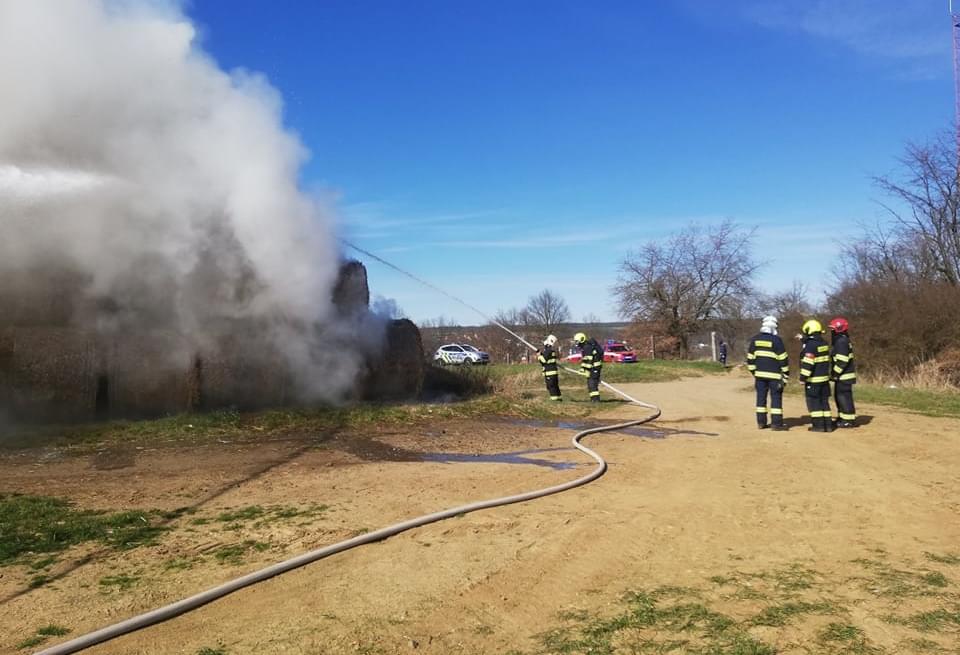 Podle velícího hasičů zde došlo nad Moštárnou u vysílače k požáru veliké hromady vystohovaných balíků sena. Požár v tomto rozsahu hoření nelze úplně uhasit, hoření by pokračovalo dál ve vzduchových kapsách, takže hasiči musí oddělit hořící balíky od těch ostatních a nechat kontrolovaně vyhořet.