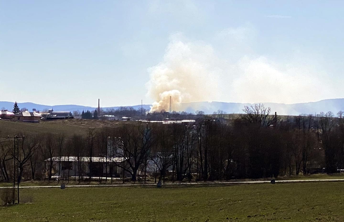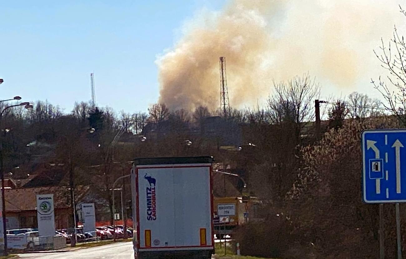 Právě teď bojuje několik jednotek s rozsáhlým požárem u Horšovského Týna. Sloupec kouře je viditelný z několikakilometrové vzdálenosti.