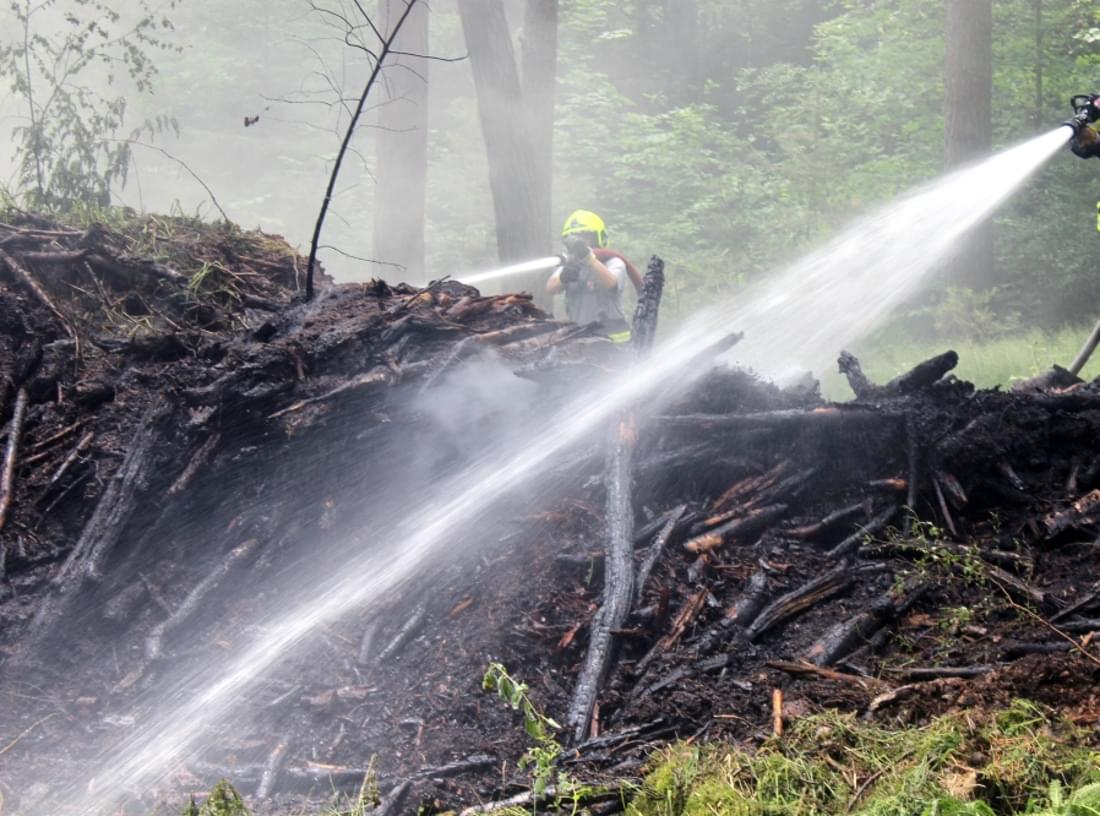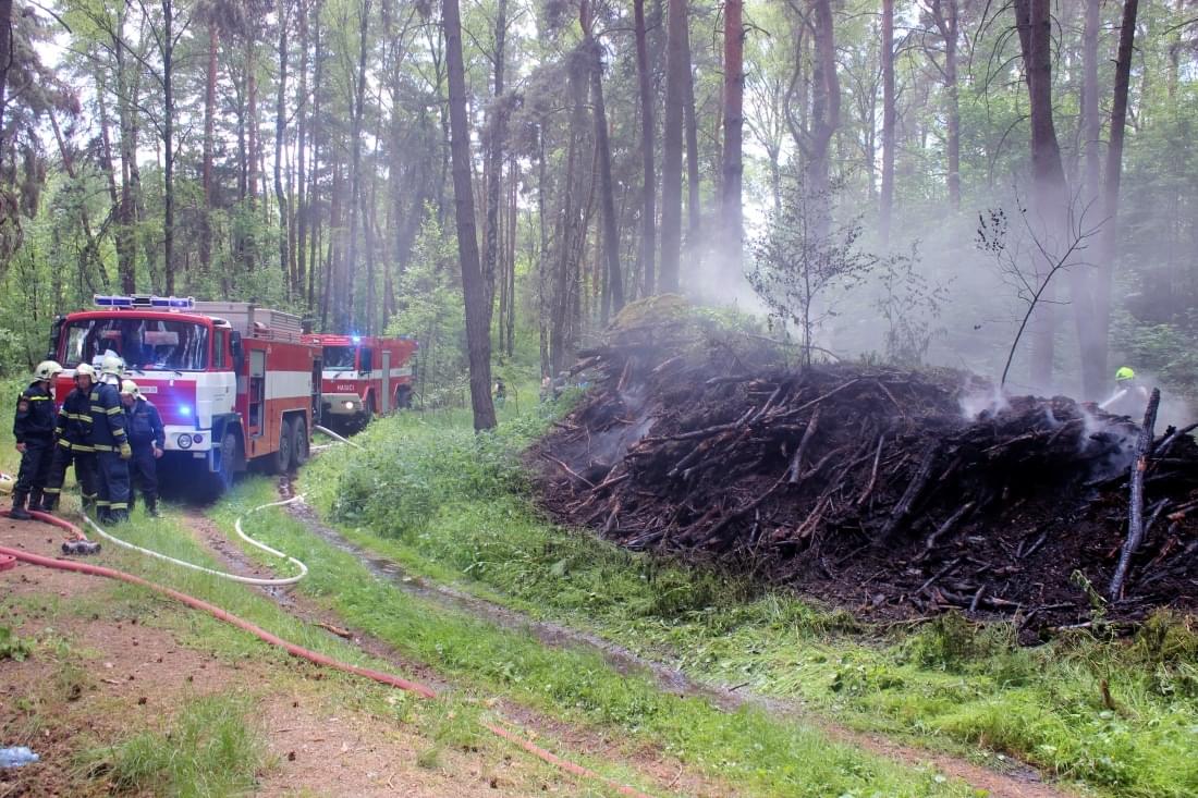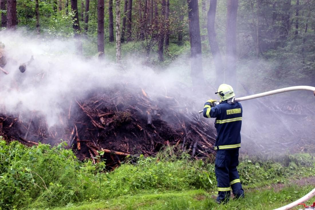 Dnes po poledni nahlásil náhodný chodec hořící hromadu dřeva u lesní cesty nedaleko ulice Sulkovská na Valše.
