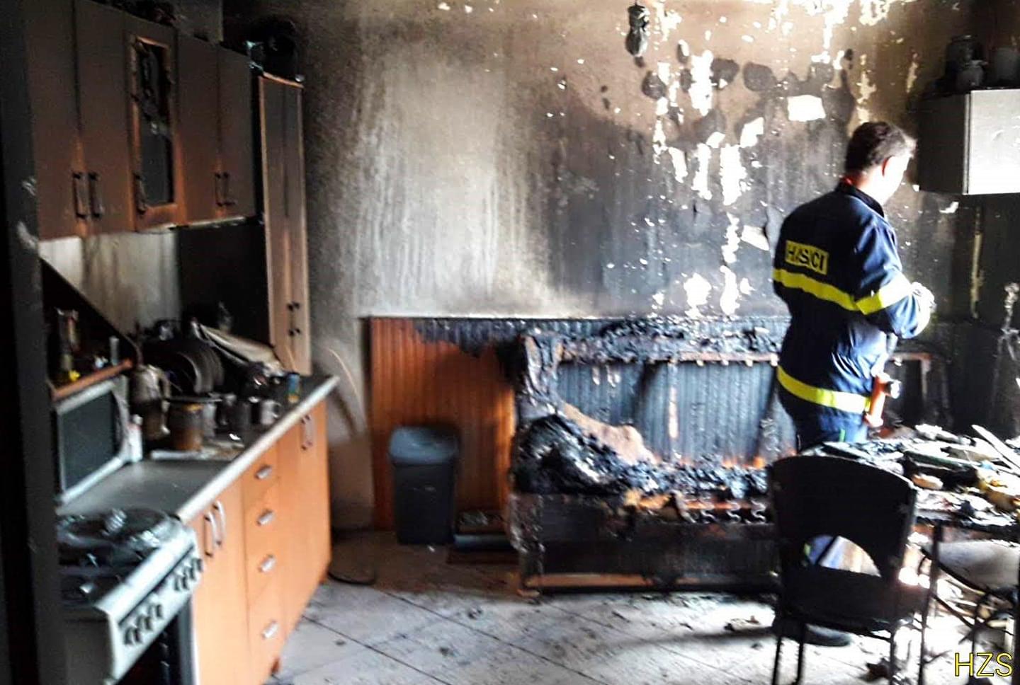 Na místo okamžitě vyjely čtyři jednotky hasičů, tedy osm kusů techniky. Na místě bylo zjištěno, že došlo k požáru jídla na plotně, plameny přeskočily na gauč a následně i na celou kuchyni. Oheň kuchyni zcela zničil a hlavně zakouřil prostory celého bytu i části domu.