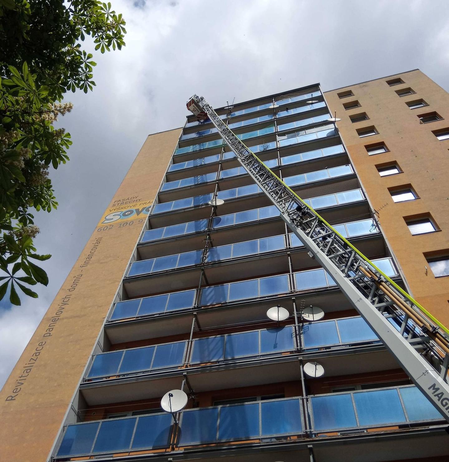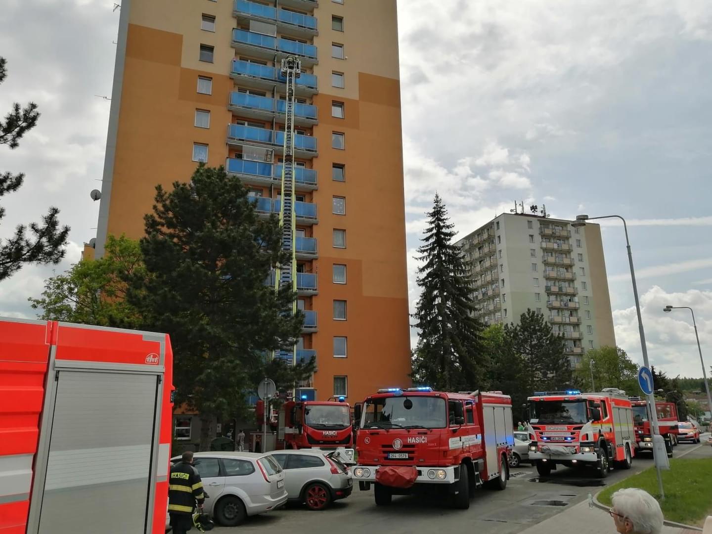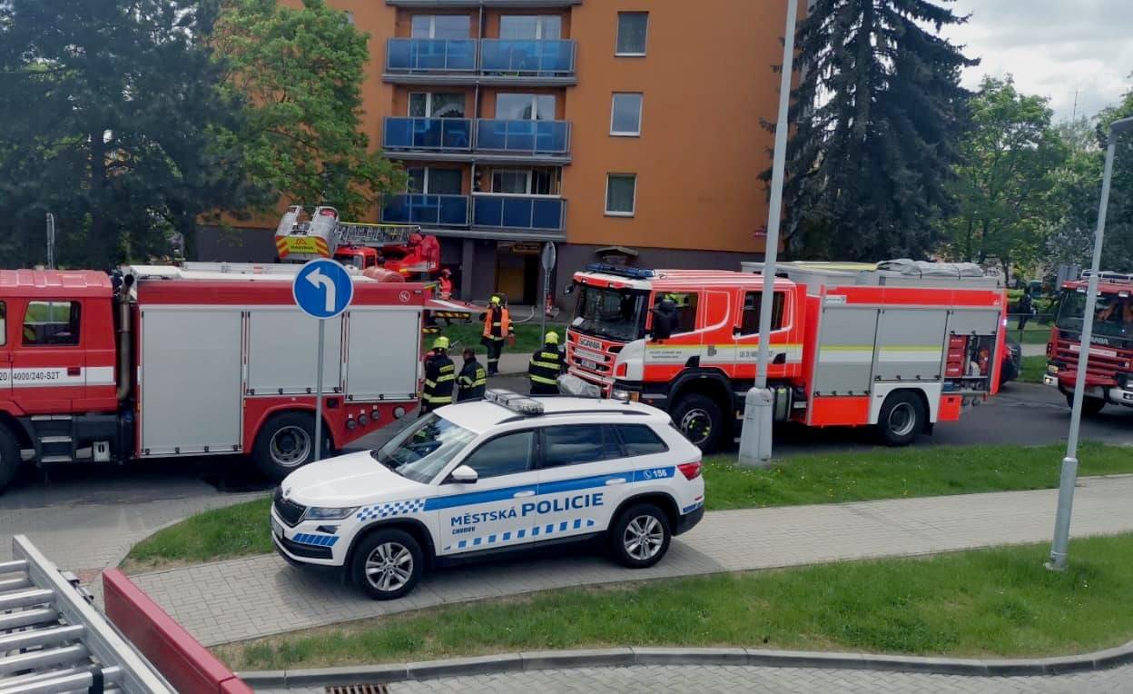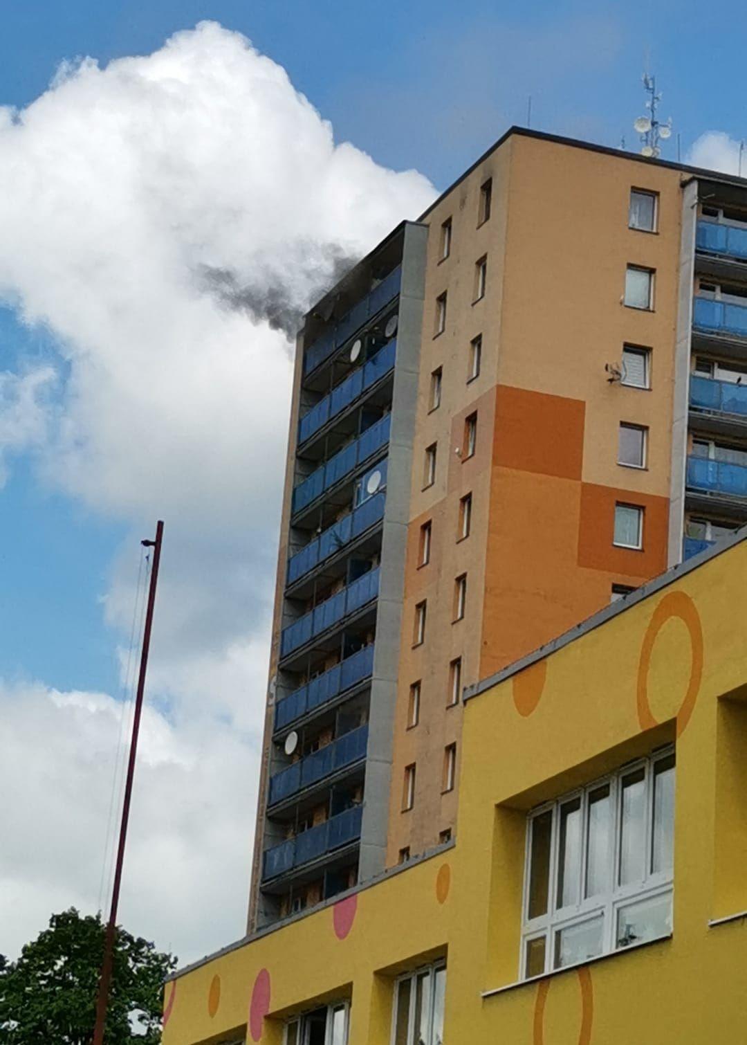 Šest jednotek hasičů zasahovalo včera před polednem v Chodově na Sokolovsku u požáru ve třináctipatrovém bytovém domě.