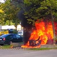 Dnes bohužel den plný požárů stále ještě nekončí, po třetí hodině odpoledne na Rokycanské třídě v Plzni zcela shořelo vozidlo Škoda Felicia. K požáru došlo na parkovišti mezi Novým židovským hřbitovem a Tesco. Svědci nám uvedli, že ve vozidle měly cestovat tři osoby, dvě žena a muž.