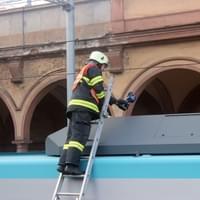 Hasiči museli po odstavení elektrického proudu nejen zajistit místo zahoření, ale i chladit střechu vlaku vodou a odvětrat zakouřené prostory uvnitř.