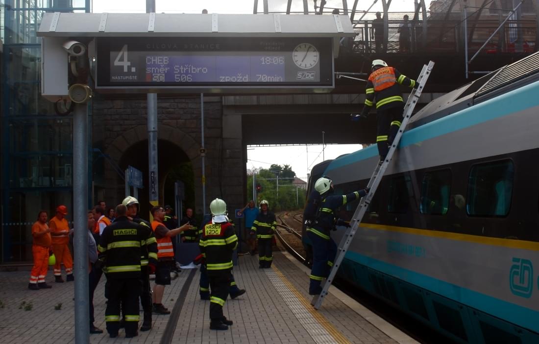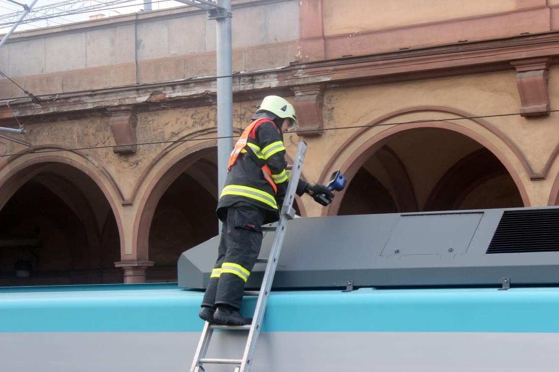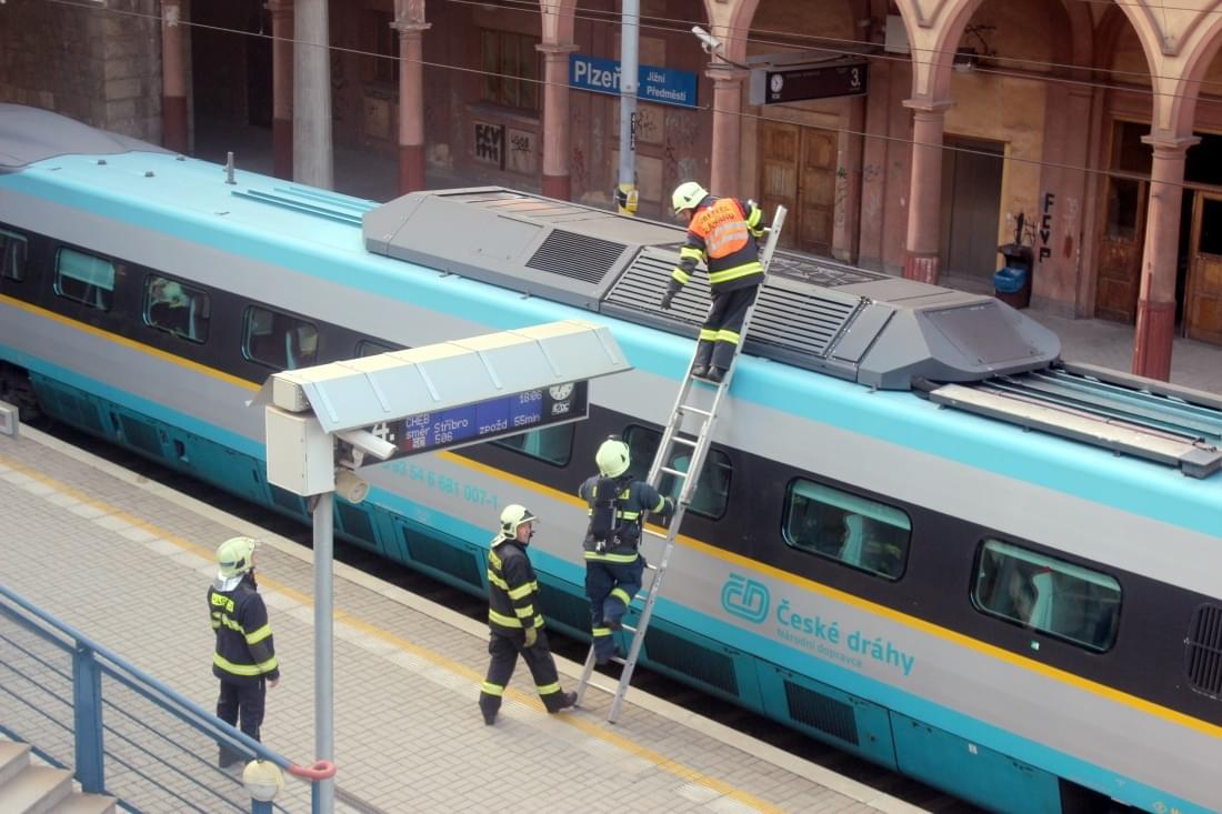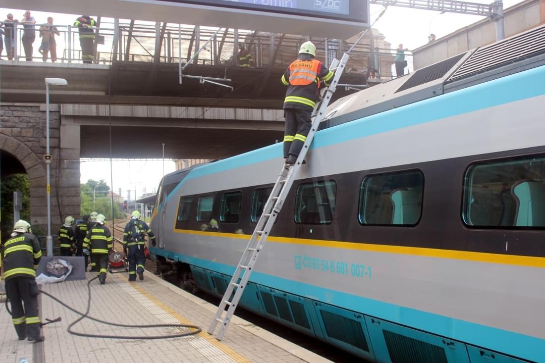 Hasiči museli po odstavení elektrického proudu nejen zajistit místo zahoření, ale i chladit střechu vlaku vodou a odvětrat zakouřené prostory uvnitř.