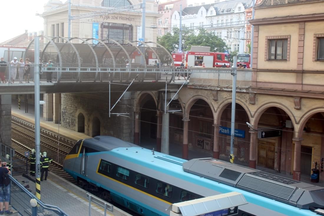 Dnes v půl sedmé večer se u nádraží Plzeň - Jižní předměstí odehrály doslova hasičské manévry, které vyděsily mnoho kolemjdoucích. Na místě zasahovalo několik jednotek hasičů, kteří vyjeli na oznámení o požáru uvnitř lokomotivy vlaku SC506 Pendolino ve směru na Cheb.